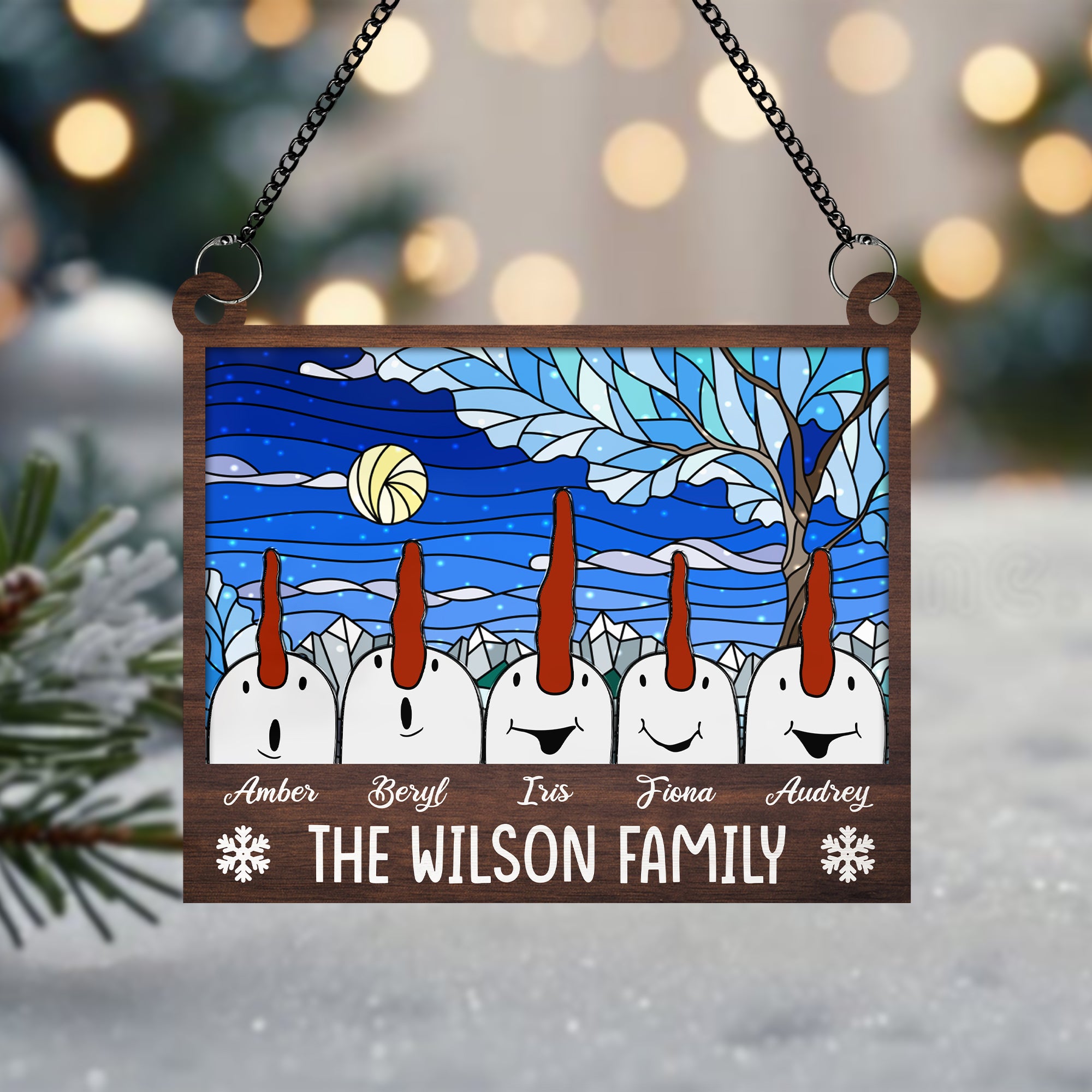 Custom Family Christmas Snowman Window Suncatcher, Christmas Decor