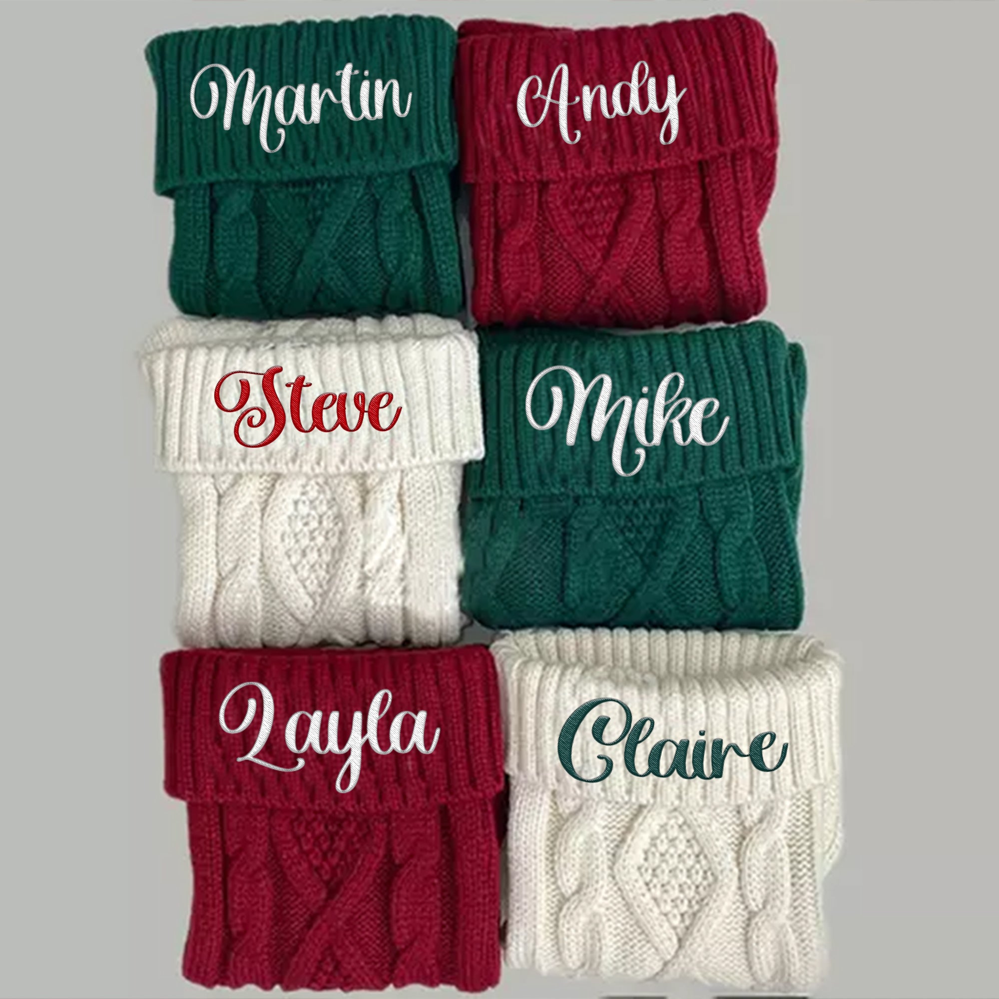 Personalized Cable Knit Christmas Stocking with Embroidered Name – Add a cozy, classic touch to your holiday decor with these beautifully knitted stockings, available in festive colors like red, green, and ivory. Each stocking is made from soft, durable material, featuring a traditional cable knit design and personalized with a name embroidered on the cuff. Perfect for family members of all ages, these stockings are spacious enough to be filled with treats, small gifts, and holiday surprises. Hang them by the fireplace to create a warm, inviting look that will make your Christmas extra memorable.