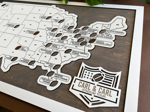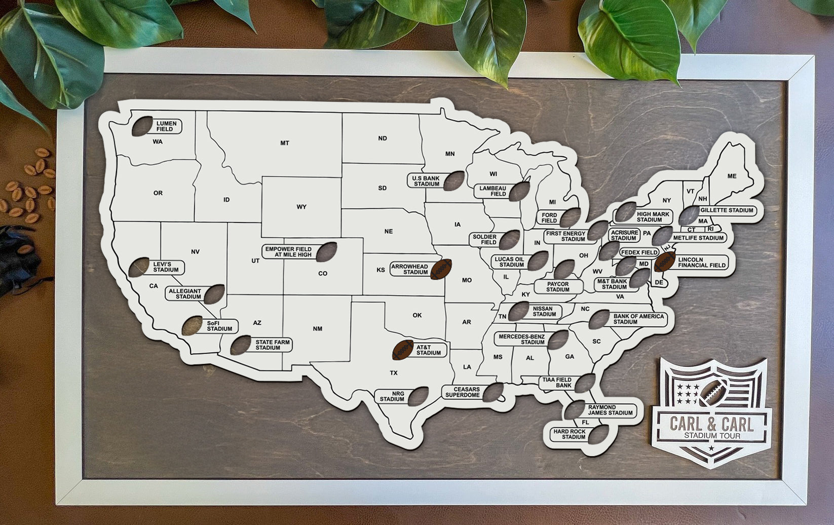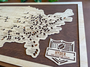 Mark your journey to your favorite football stadiums with the Custom Football Stadium Map – the perfect gift for the die-hard football fan!