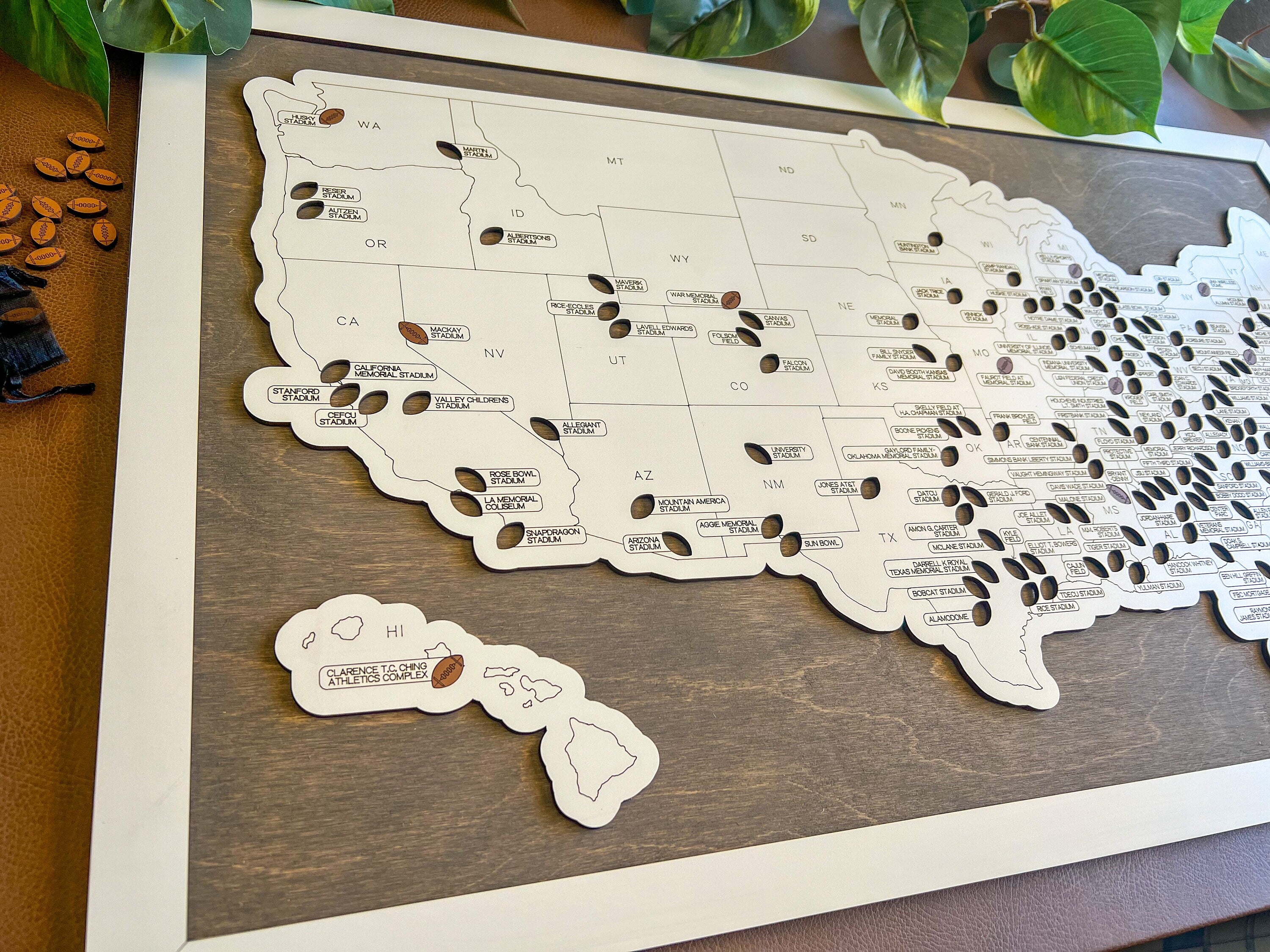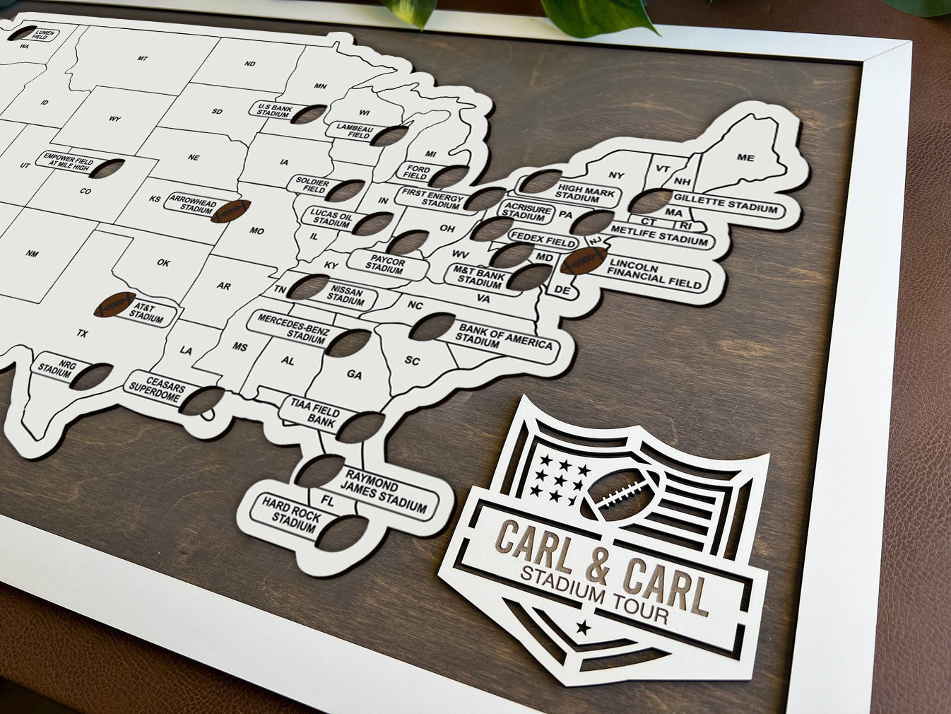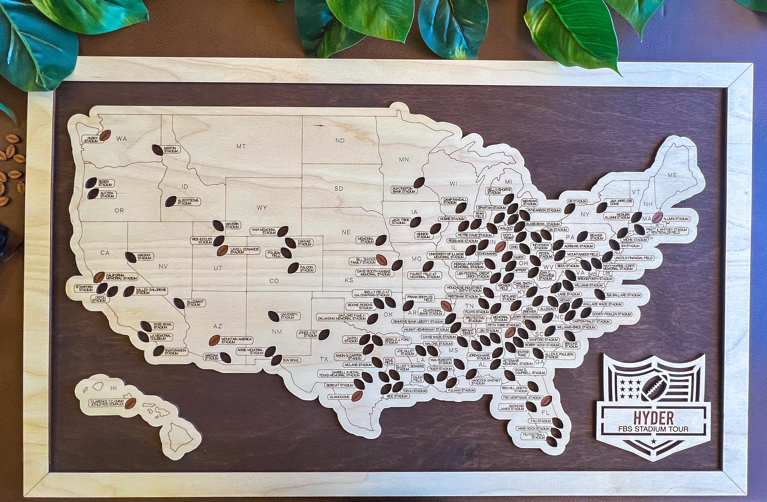 Custom Football Stadium Map With Pins, Fathers Day Gift, Gift For Football Fan