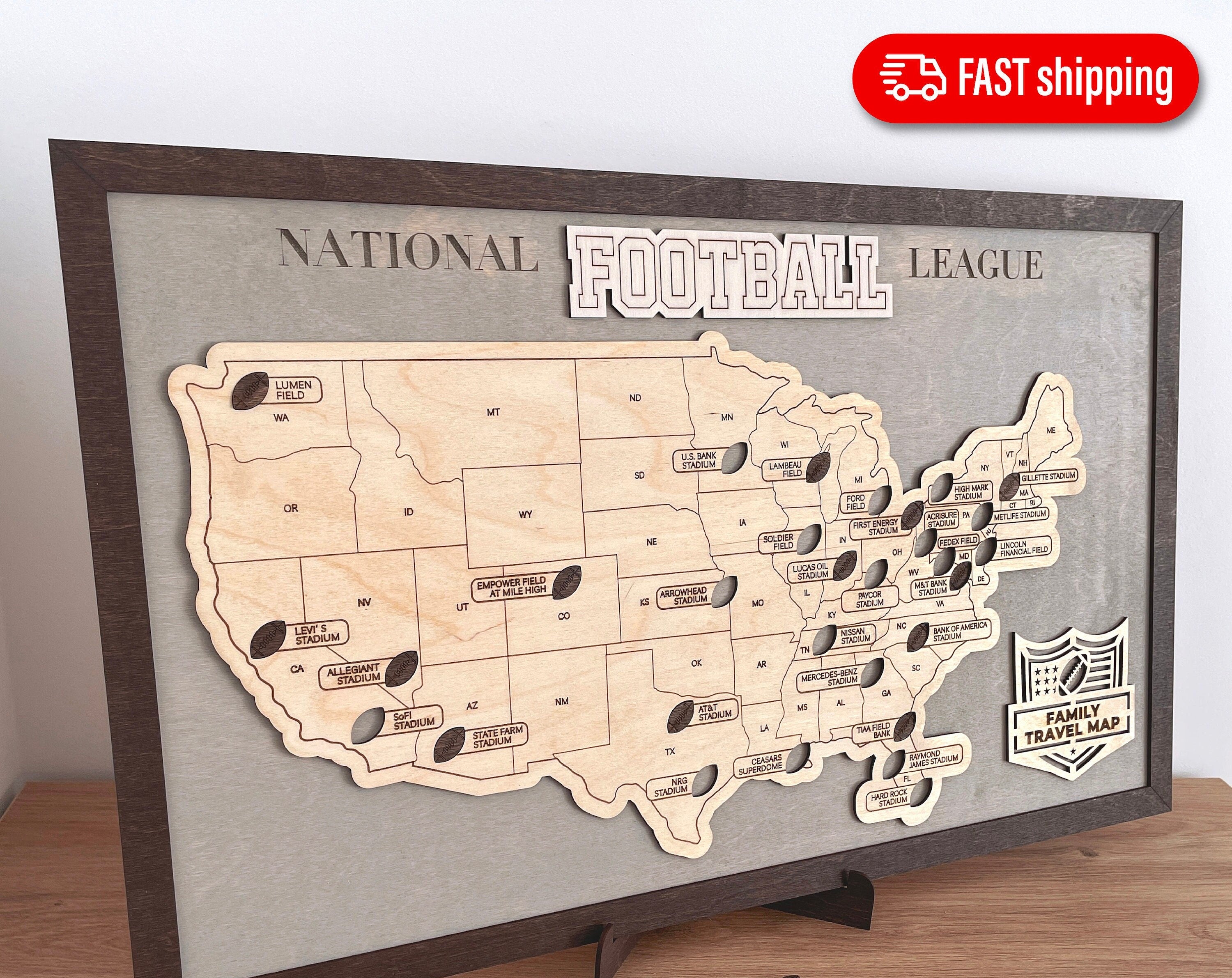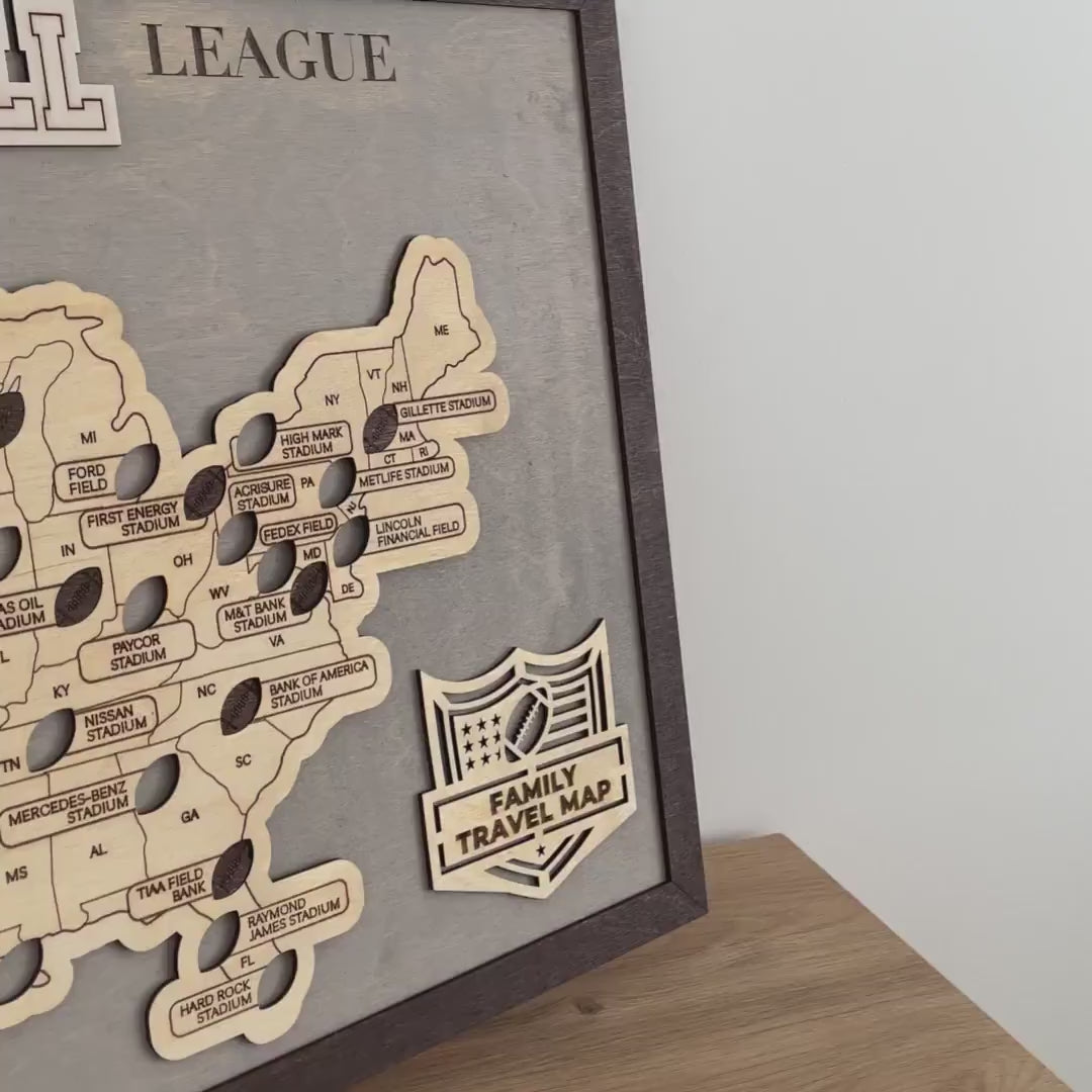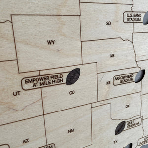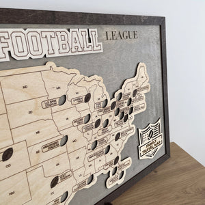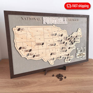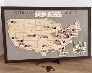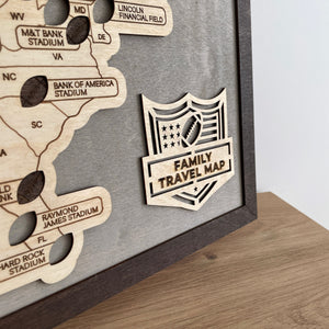 US Football National Stadium Map Wooden Sign, Personalized Family Travel Map With Pins