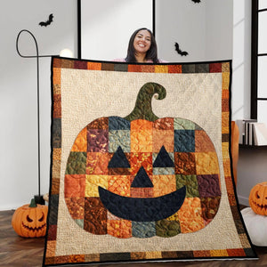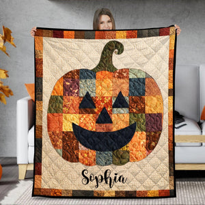 Custom Halloween Pumpkin Quilt Blanket, Personalized Sherpa Blanket, Spooky Season Decor