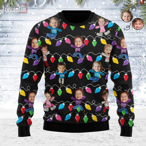 Add a personalized touch to holiday hilarity with our Custom Kids Pictures Ugly Christmas Light Sweater! This unique and funny Christmas sweater lets you showcase your kids’ faces in a playful design that’s sure to light up the room—literally and figuratively. With whimsical holiday lights surrounding your custom photos, it’s the perfect way to bring a little extra cheer to your holiday festivities.