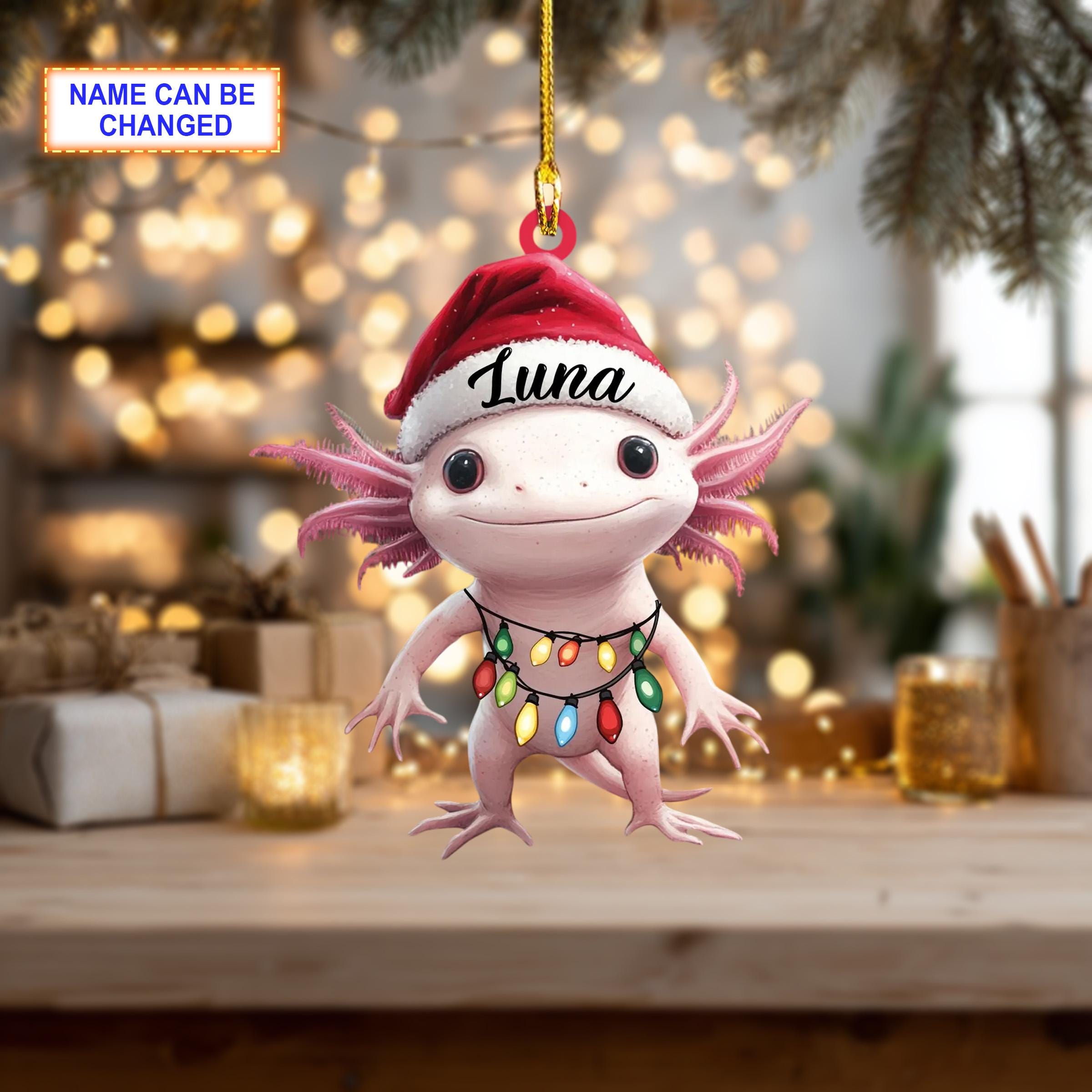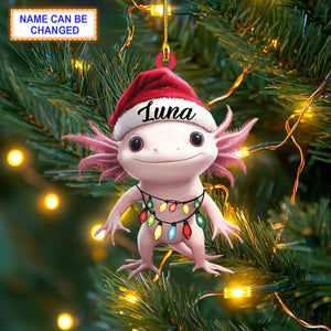 Axolotl Salamander Santa Hat Ornament, Christmas Tree Decoration, Acrylic Ornament, Christmas Ornament