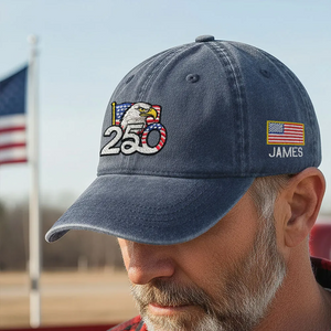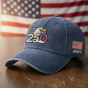 Custom Name Eagle American Flag Print Hat, 250th Anniversary Patriot Hat, Classic Cap