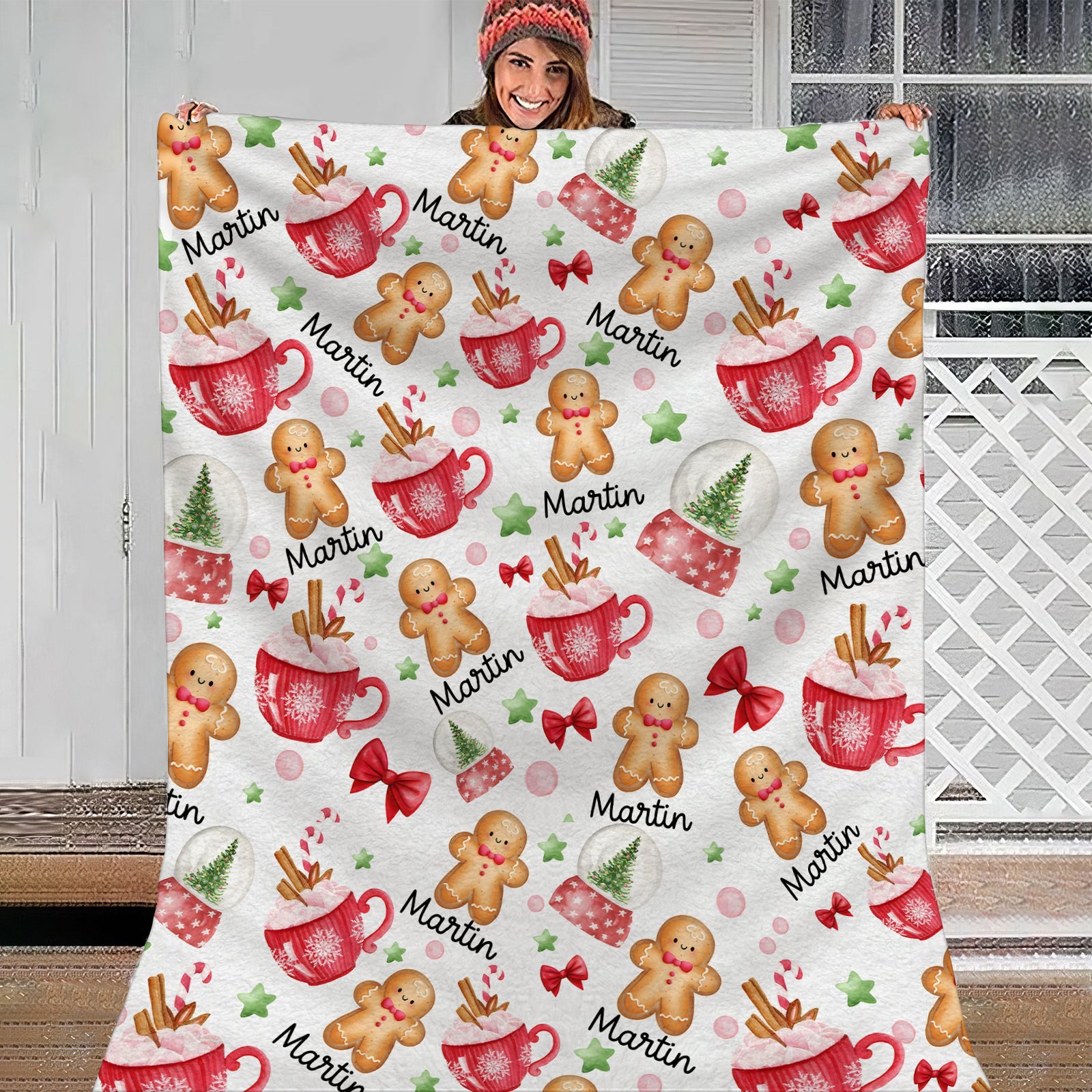 Custom Name Gingerbread Christmas Blanket, Christmas Gifts