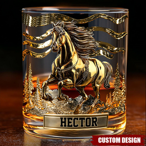 Custom Name Horse Print Whiskey Glass, Wild Spirit Unique Whiskey Glass, Gift Ideas For Horse Lovers