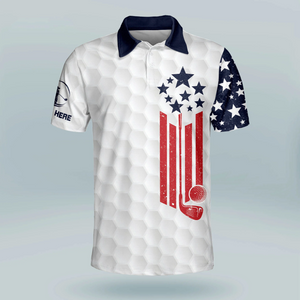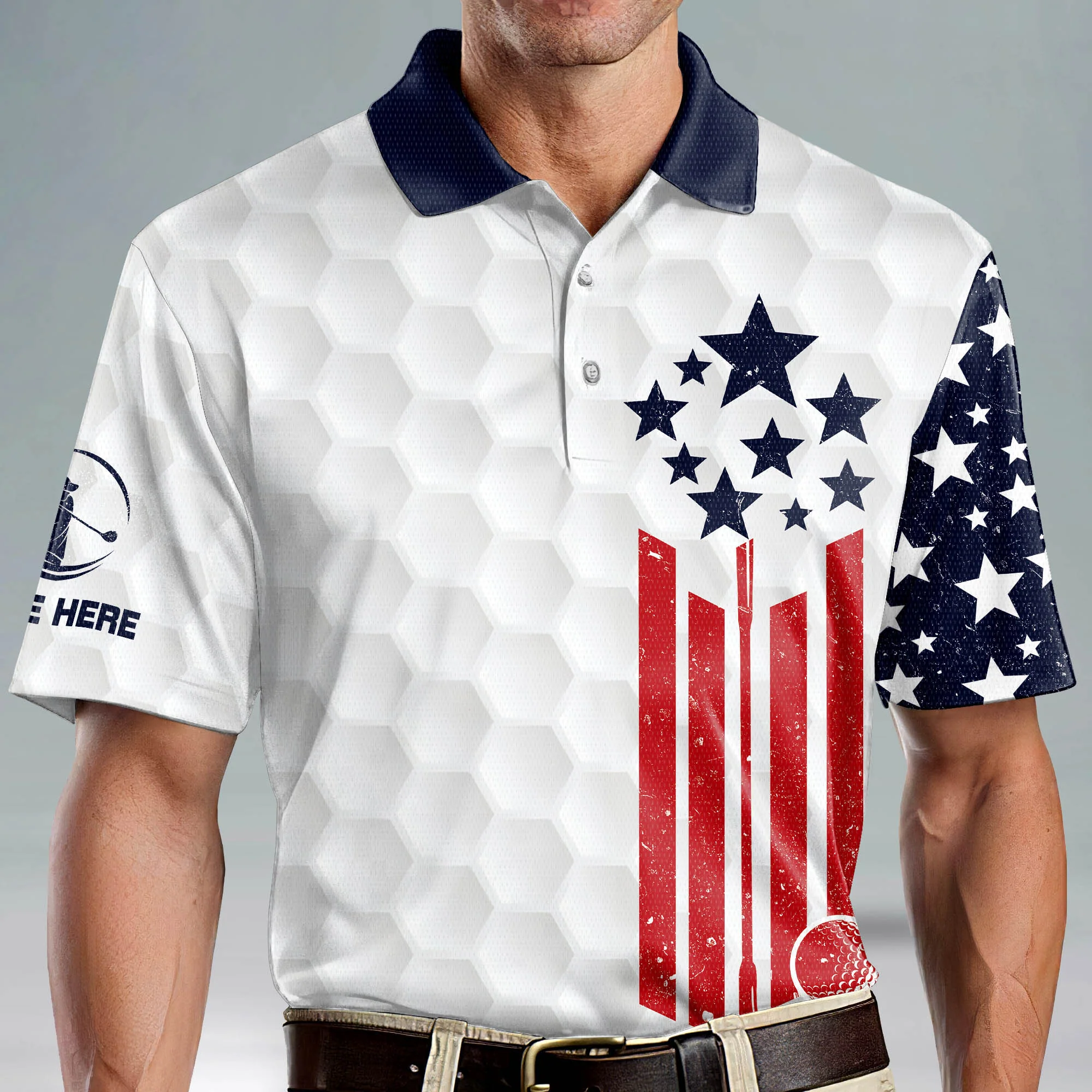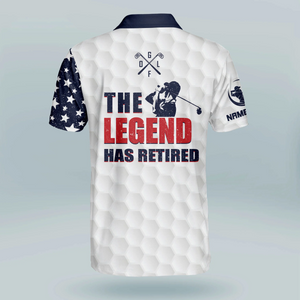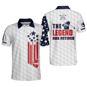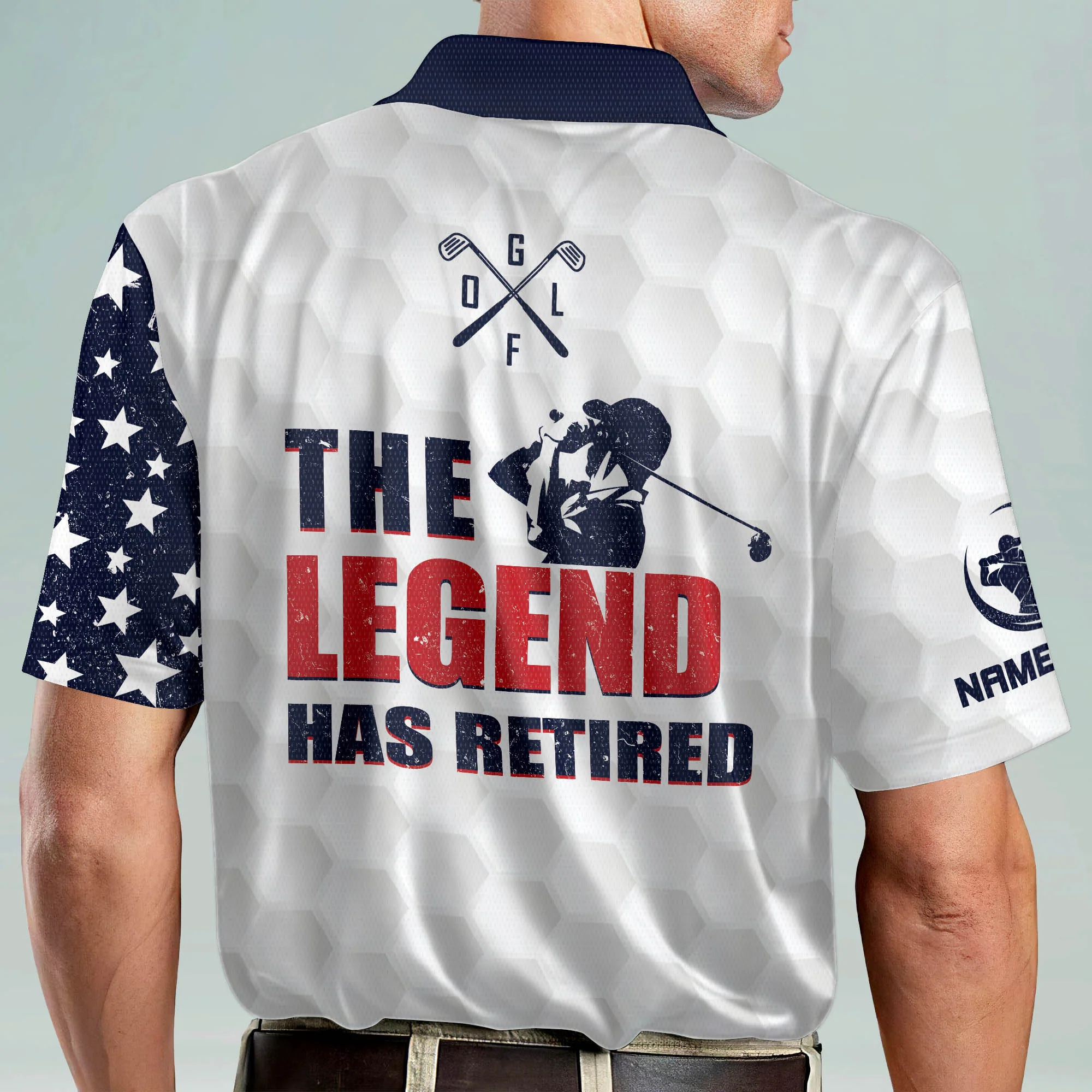 Custom Name The Legend Has Retired American Flag Golf Polo Shirts, Golf Gift For Men, Golfing Apparel
