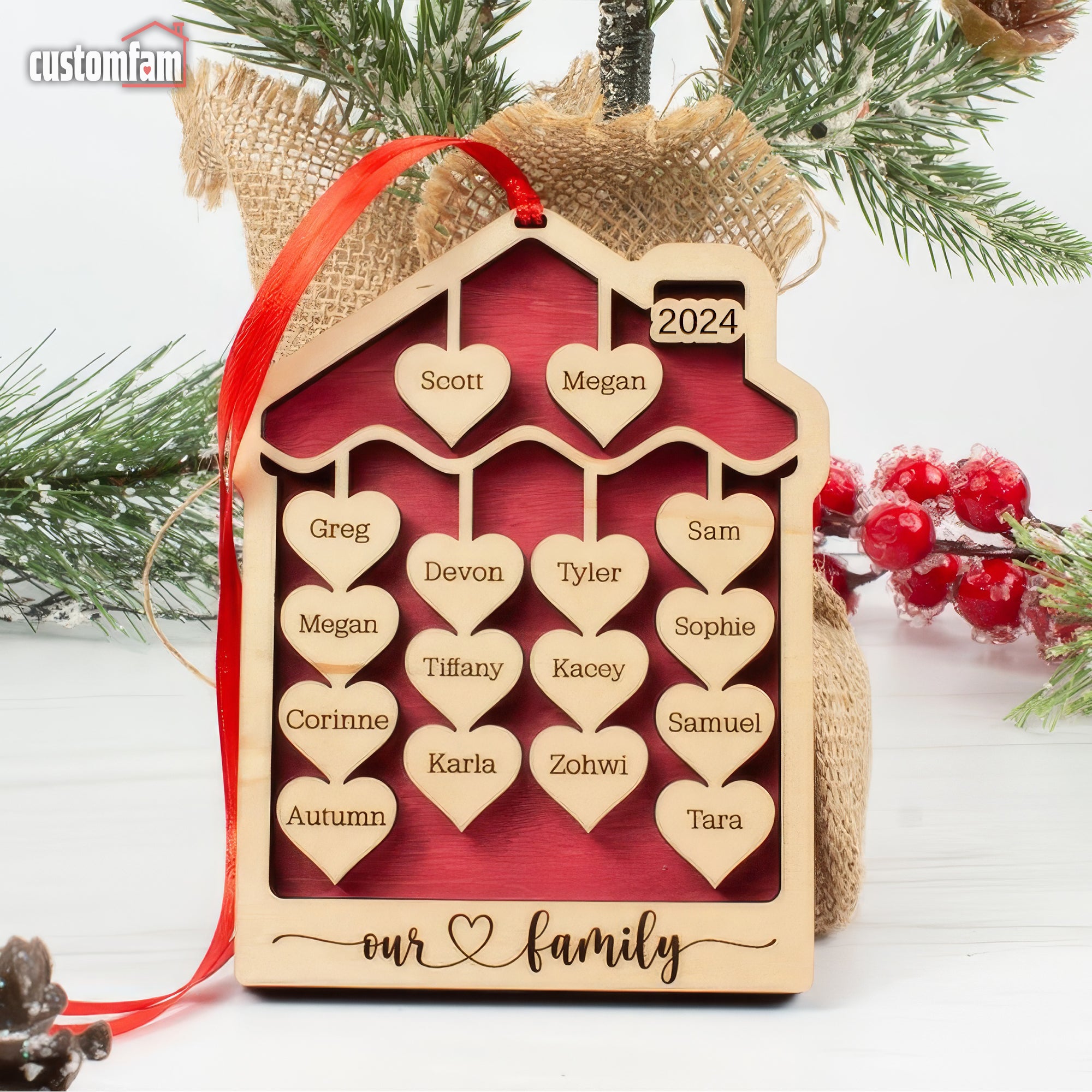 Custom Names Family Christmas Ornament, Large Christmas Ornaments, Family Gift