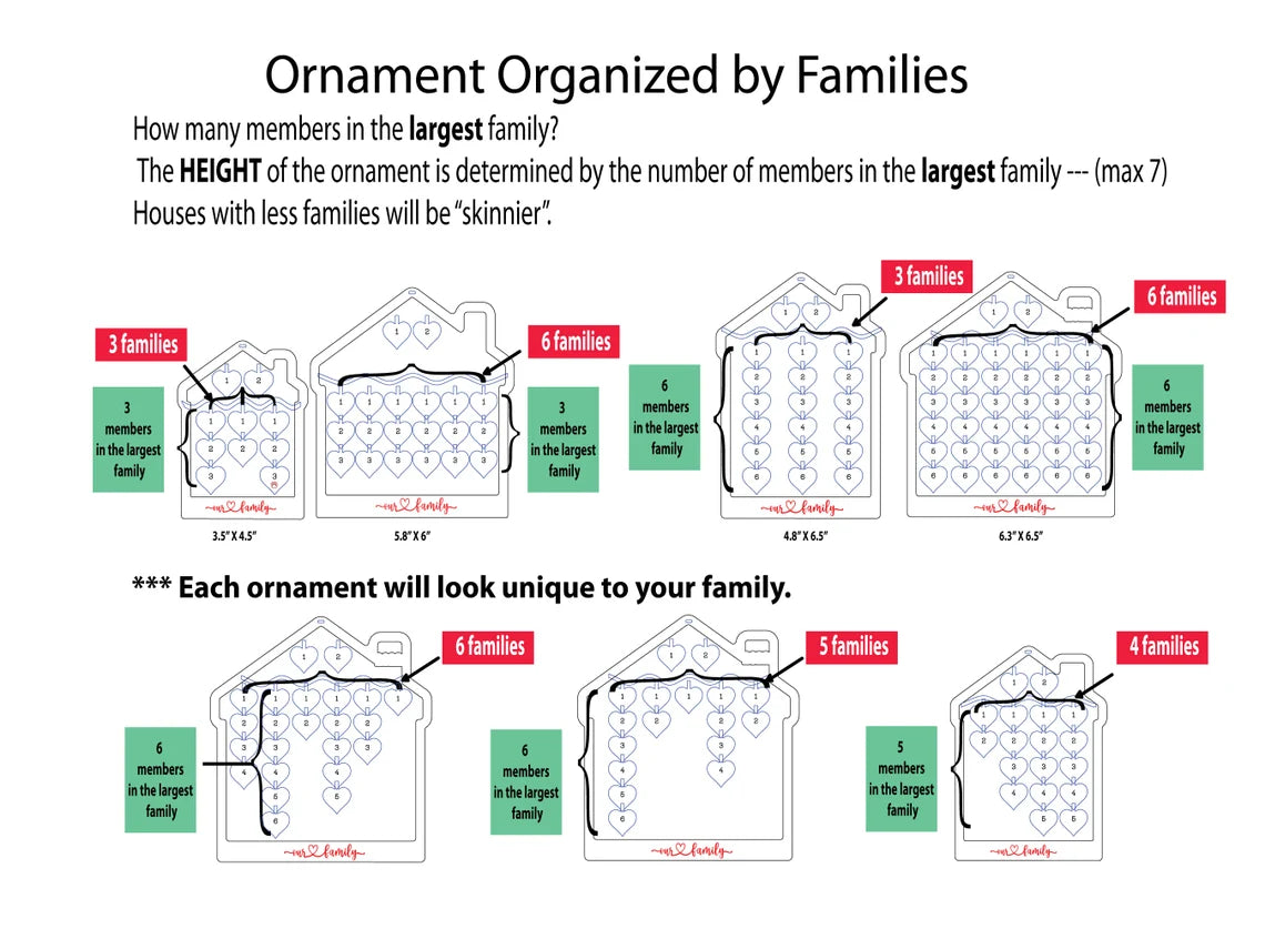 The HEIGHT of the ornament is determined by the number of members in the largest family (max 7)