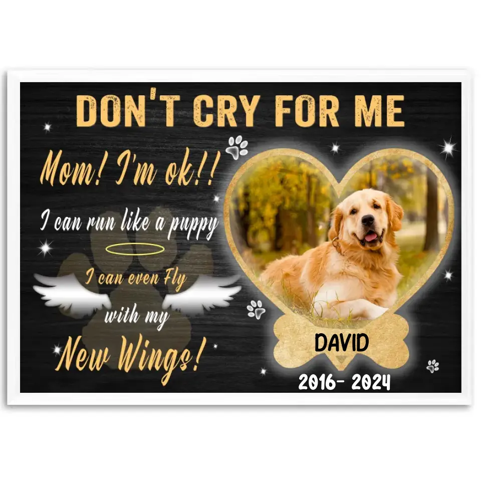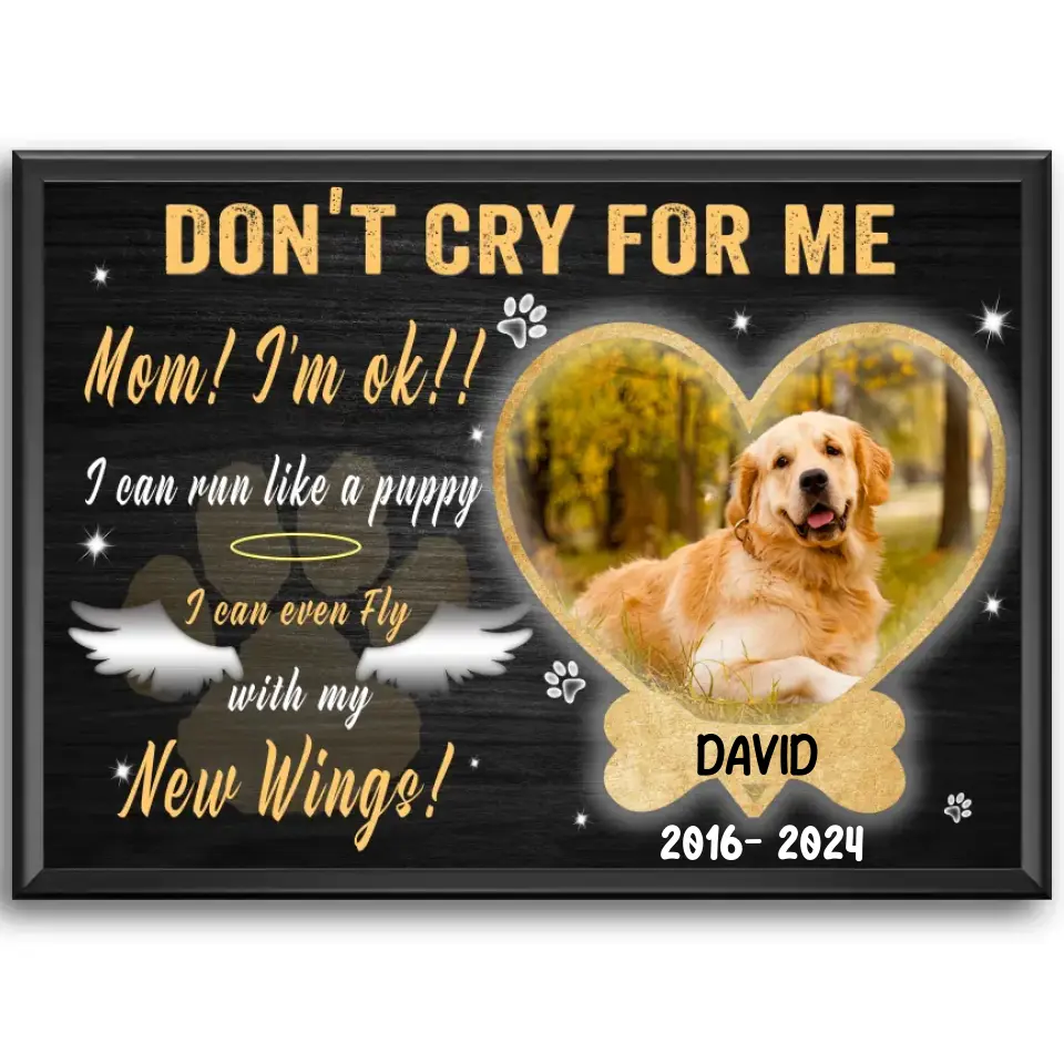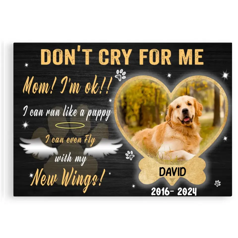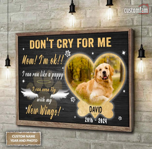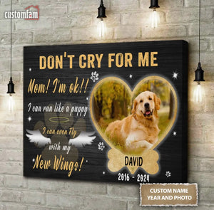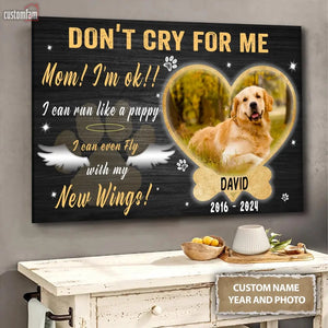 Personalize Photo Canvas Prints, Dog Memorial Gift, Dog Loss Gifts, Gift For Dog Lover, Don't Cry For Me Canvas