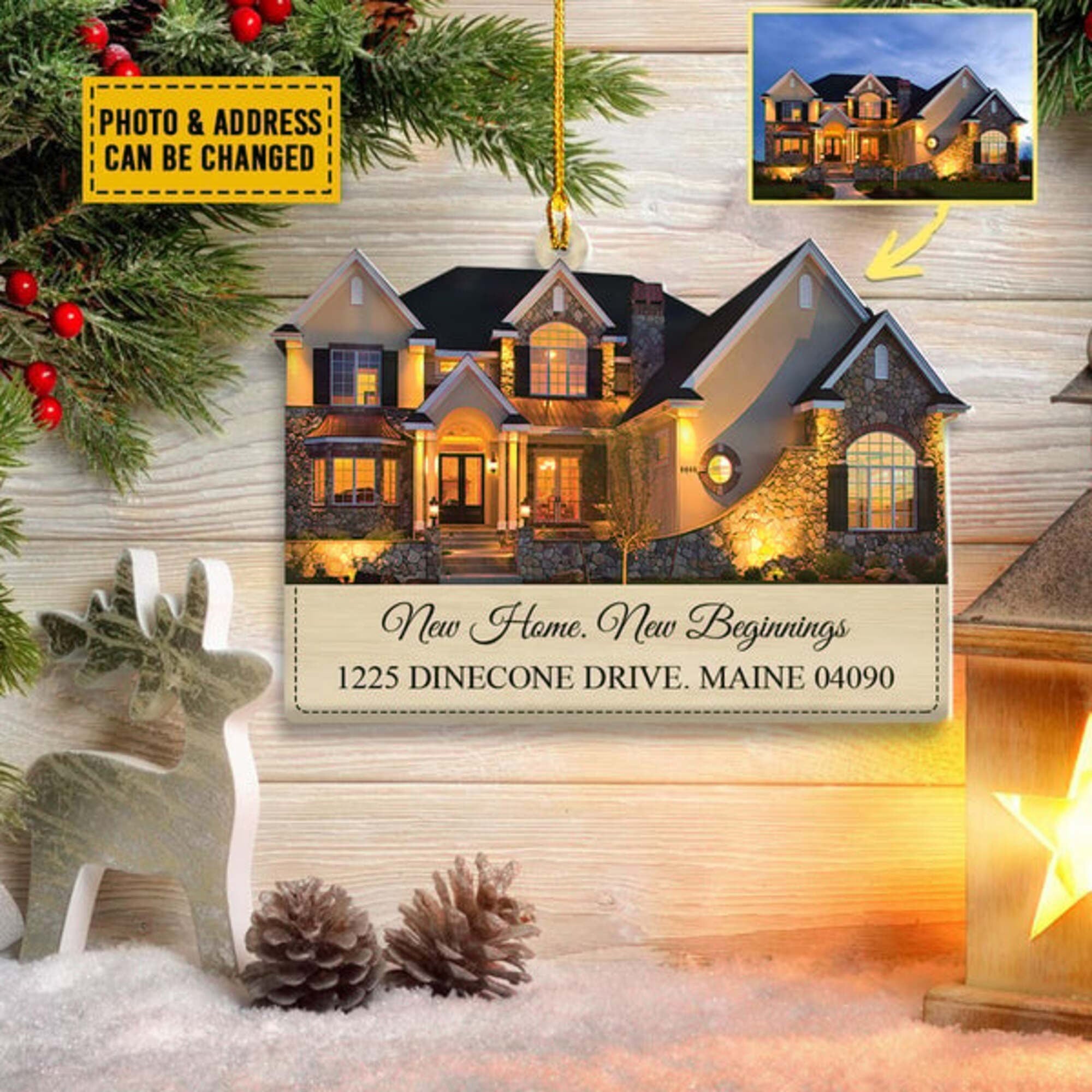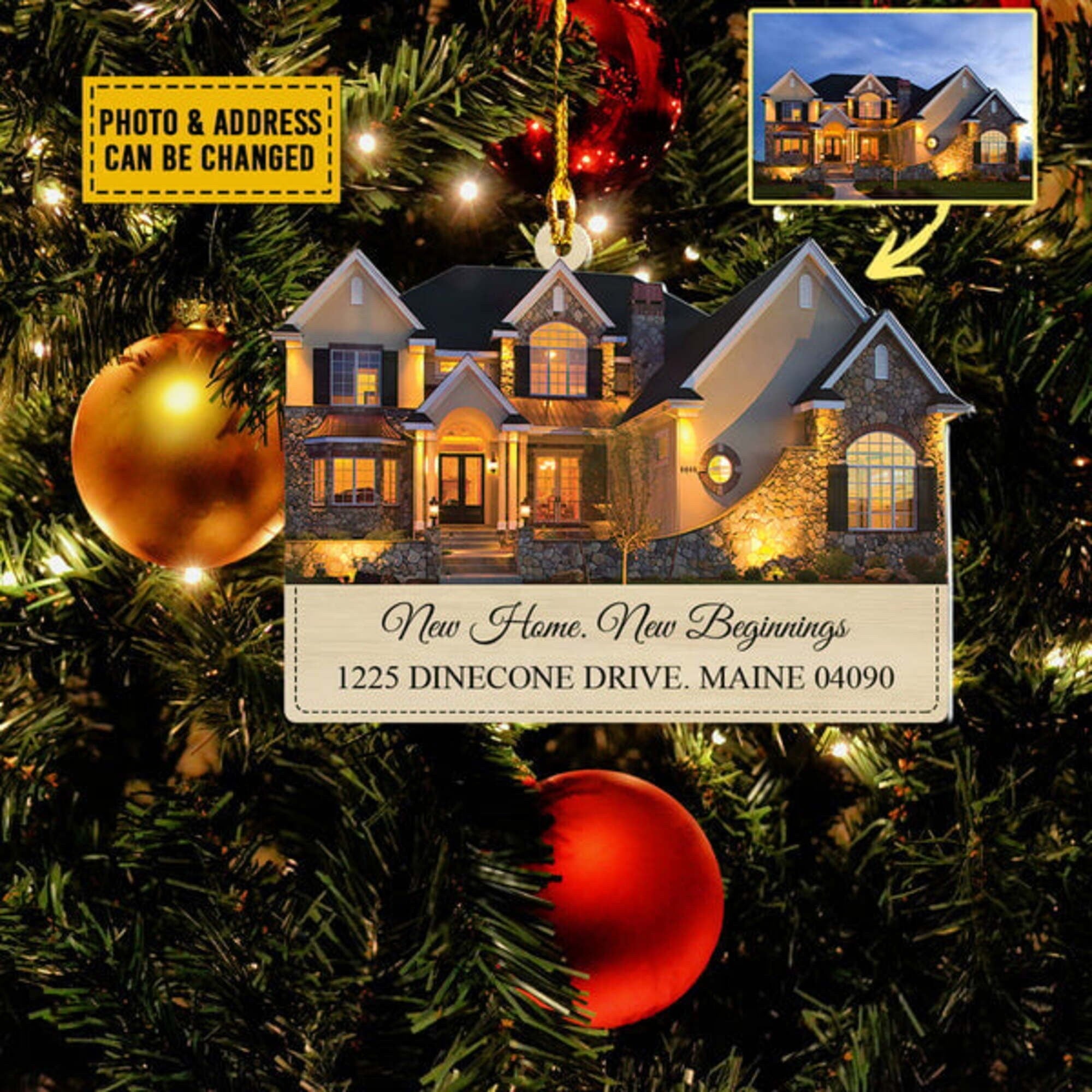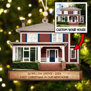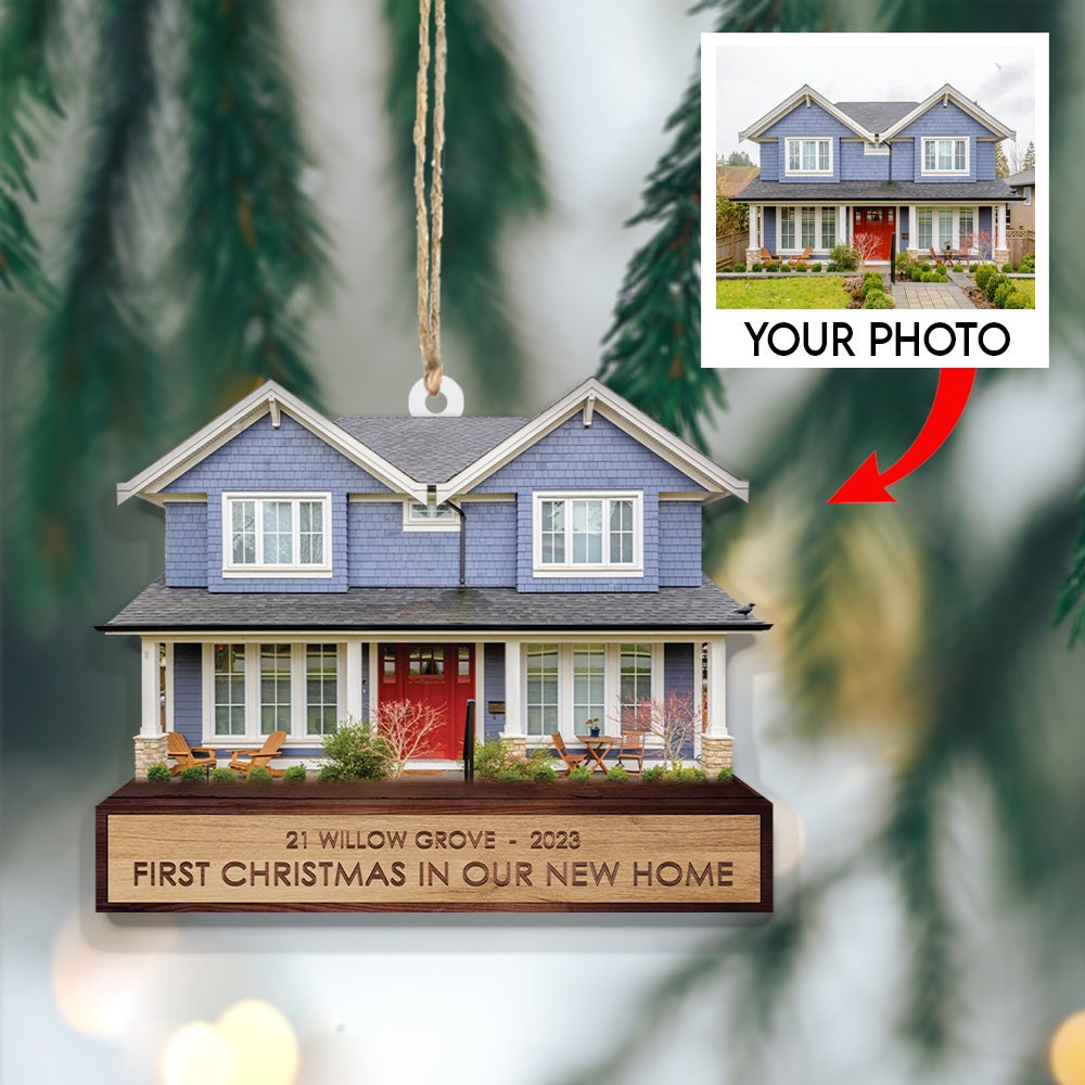 Custom Photo House Ornament, New Home Christmas Ornament, Xmas Gift for Family