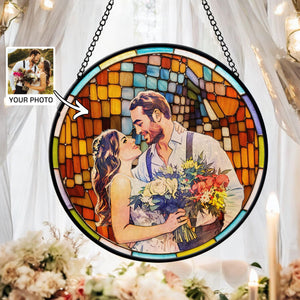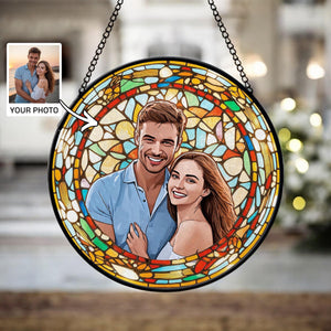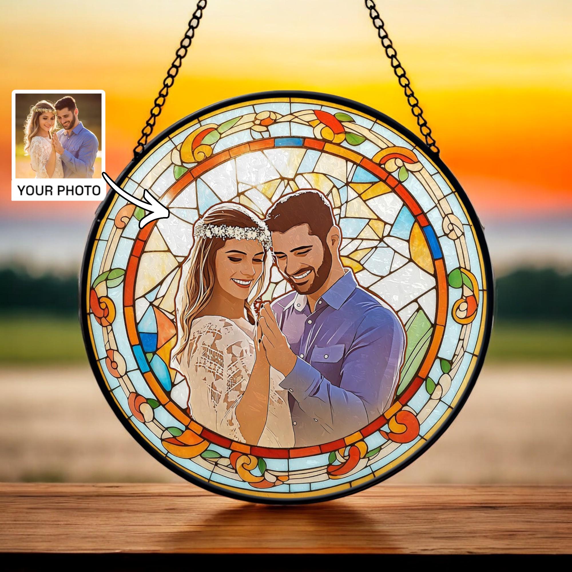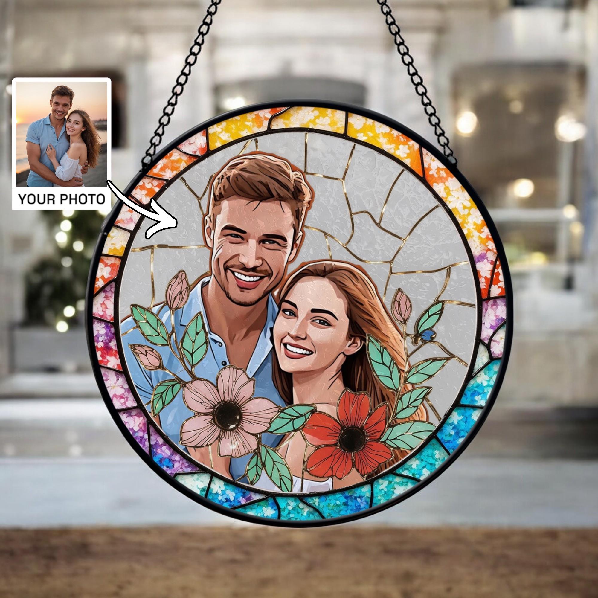 Custom Photo Portrait Couple Stained Glass Suncatcher, Valentine Gift For Couple