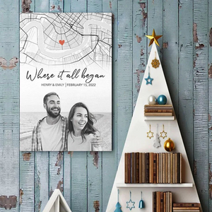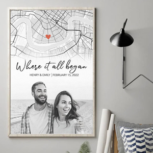 Custom Photo Where It All Begin Poster, Our First Date Map Poster, Wall Art Home Decor, Anniversary Gifts