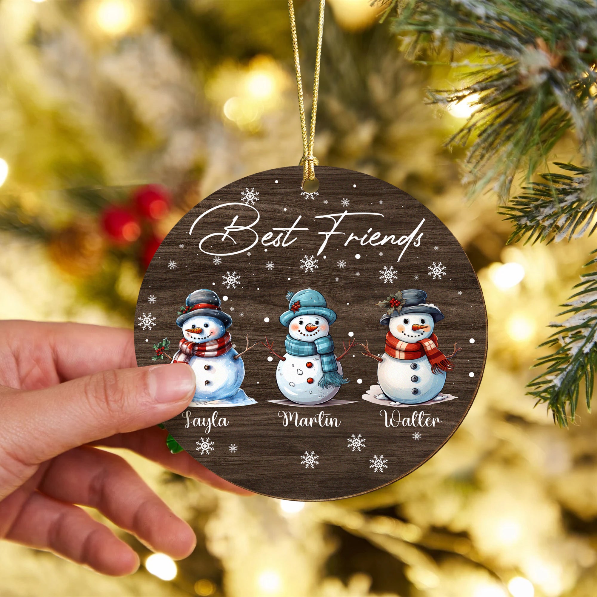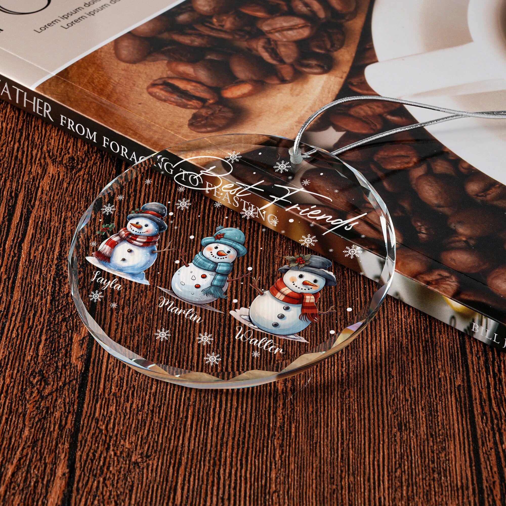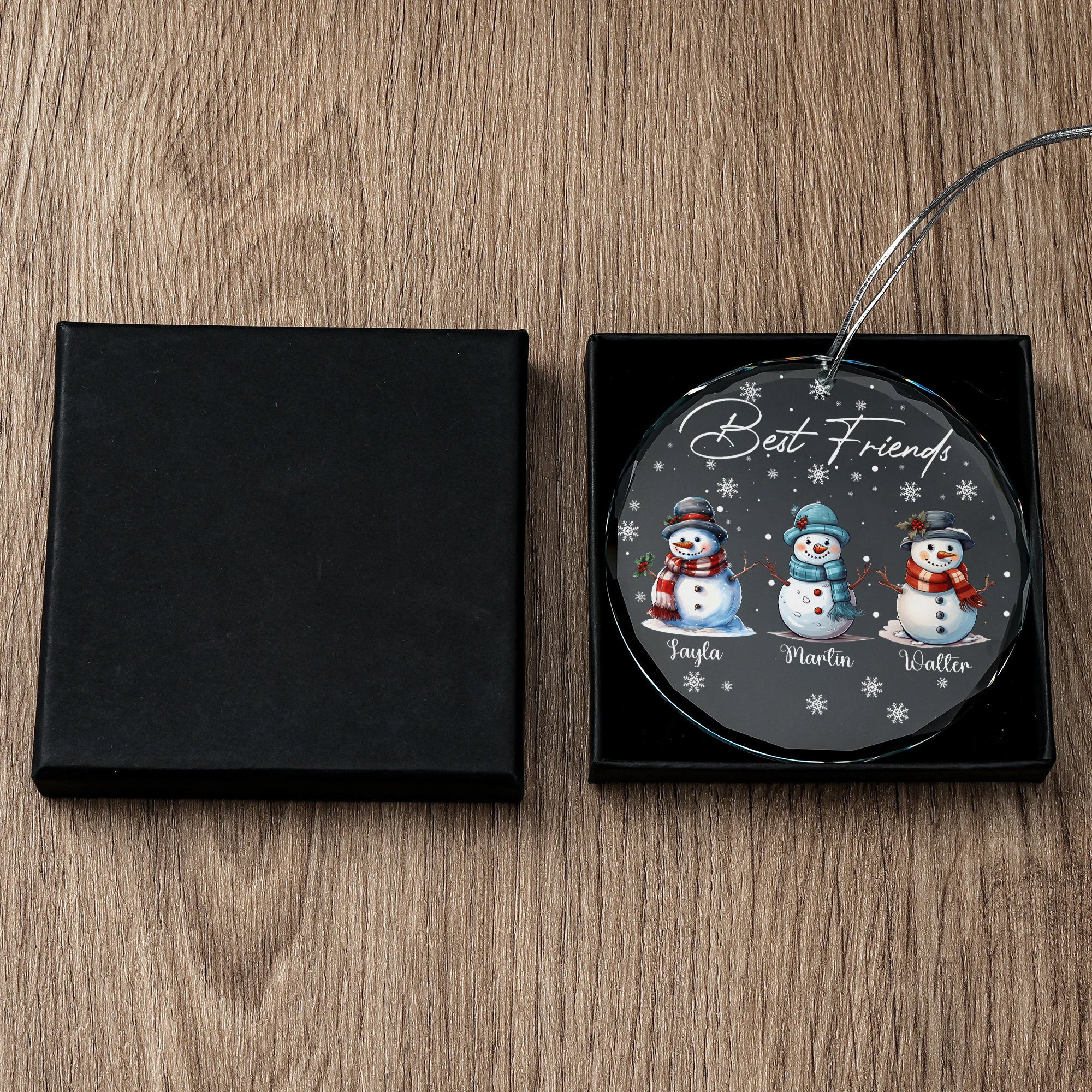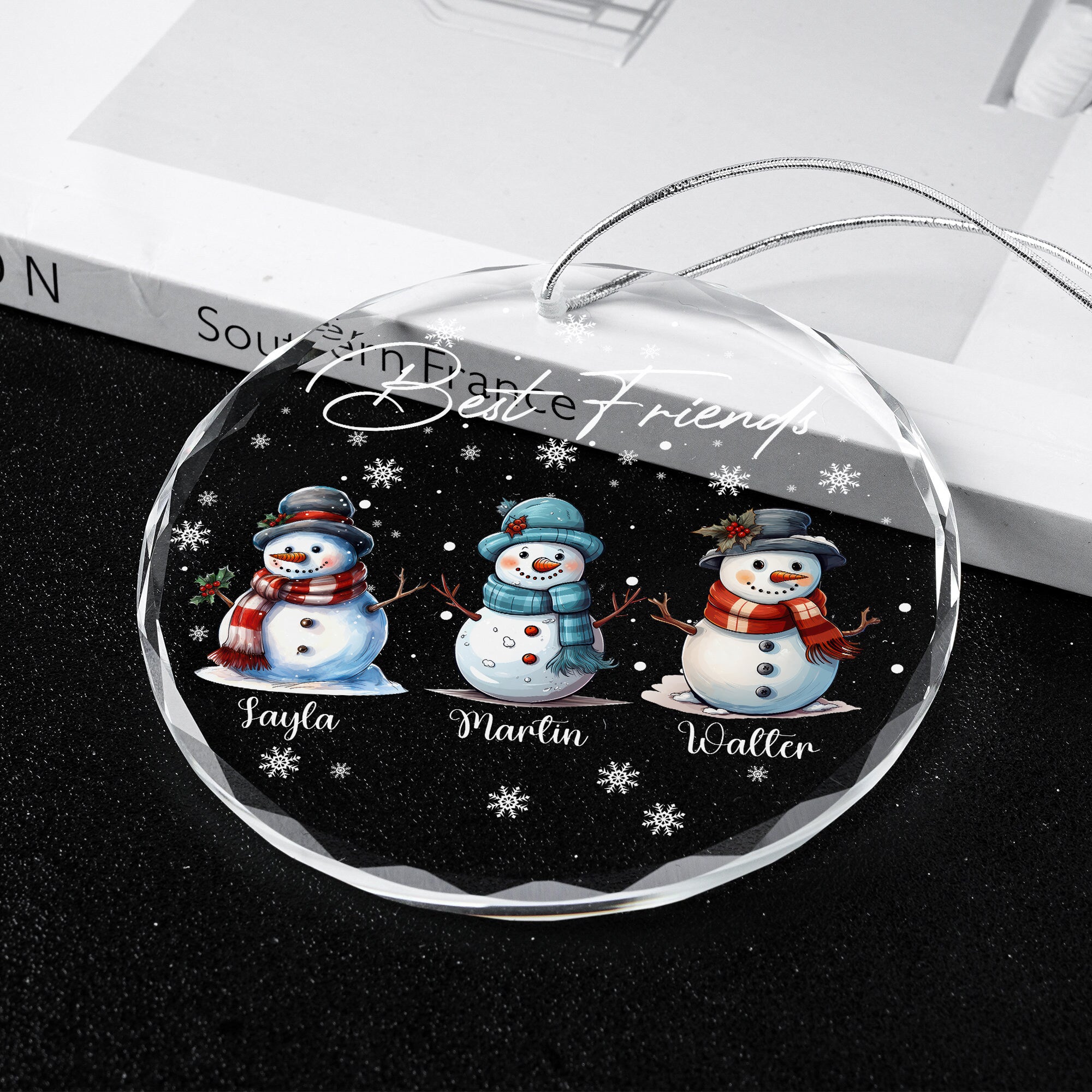 Custom Snowman Christmas Glass Ornament, Best Friends Gift