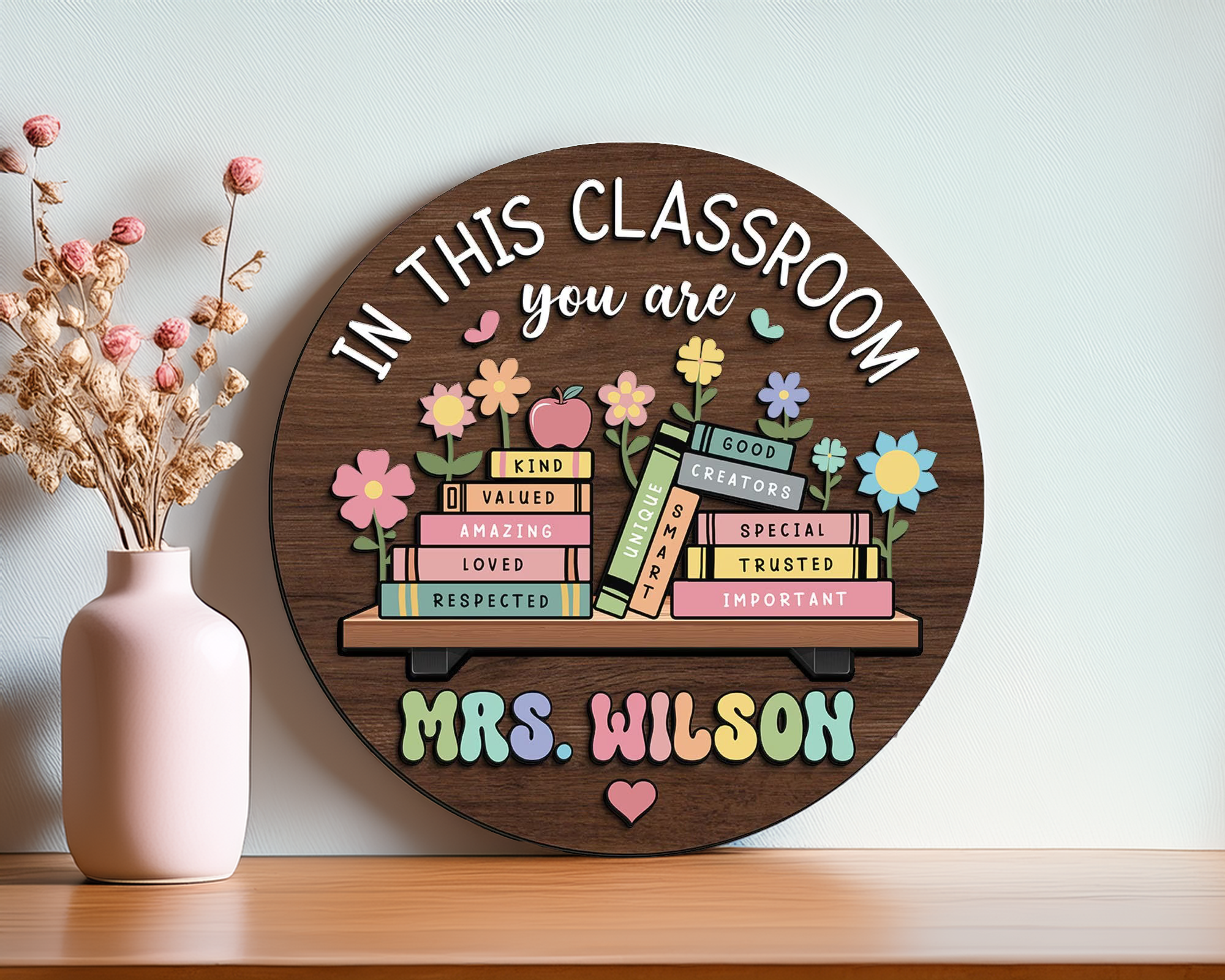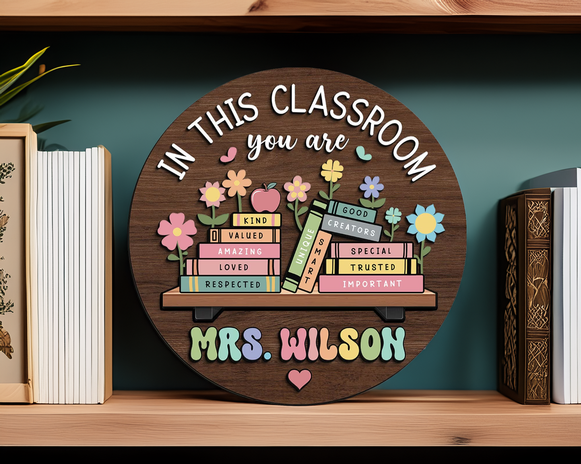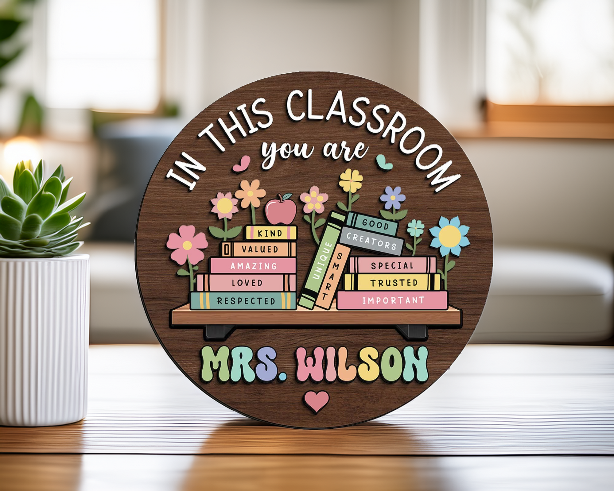 Brighten any classroom and make teachers feel truly appreciated with this personalized wooden teacher sign! Designed to inspire students and create a warm, welcoming environment, this charming wall decor is perfect for classroom setups, gifts, or educational space styling.