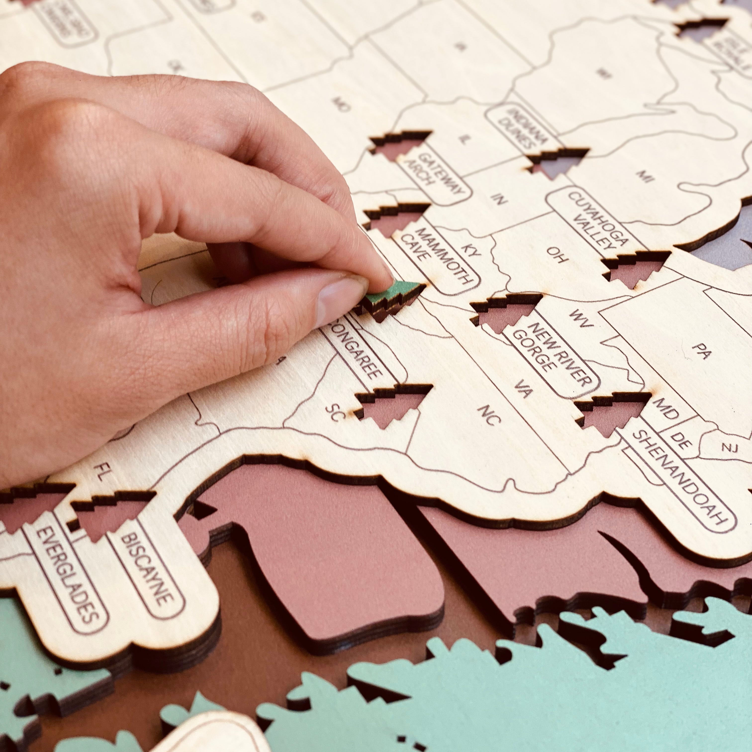 With our custom engraved badge, your wood map becomes a one-of-a-kind storyteller - marking your family name and the beginning of countless outdoor journeys through America's most beautiful parks.