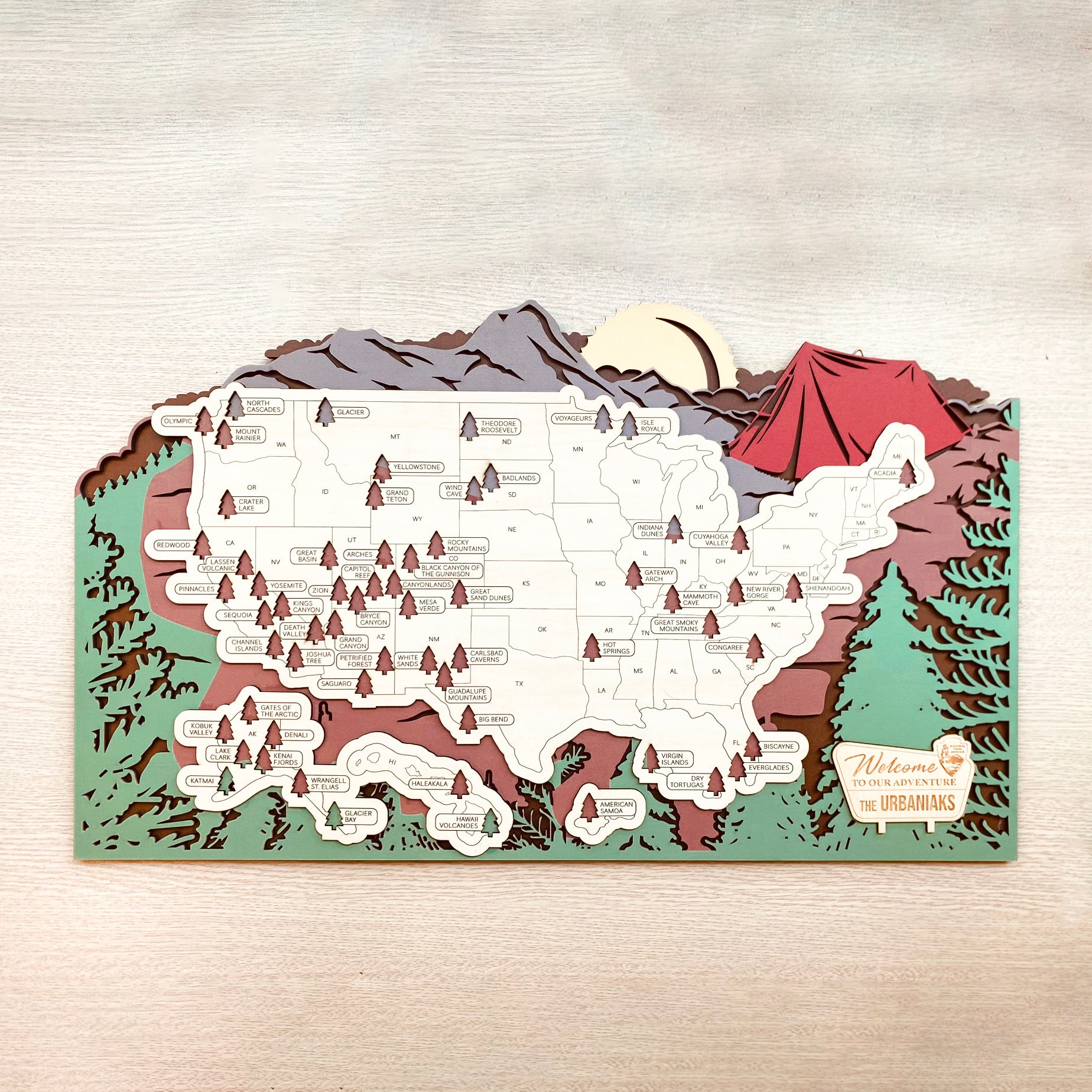 Perfect for nature lovers and explorers, it's an artistic way to display the national parks your family has visited.