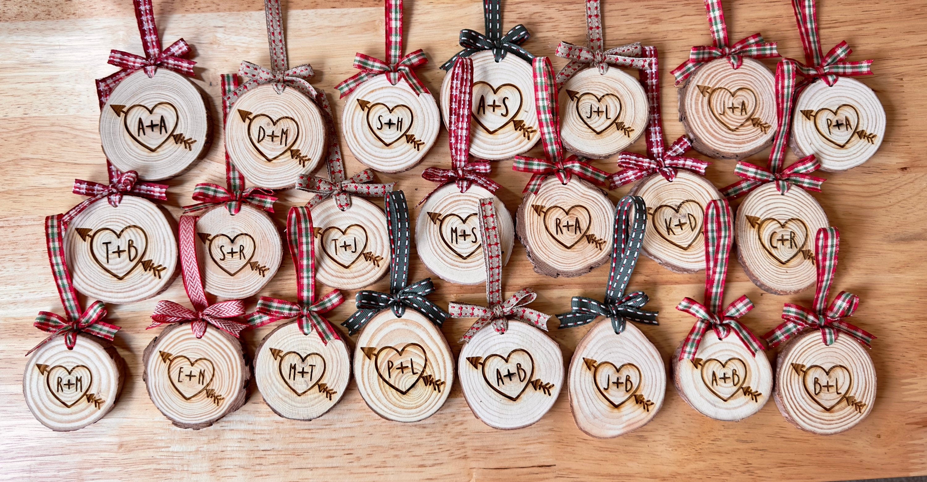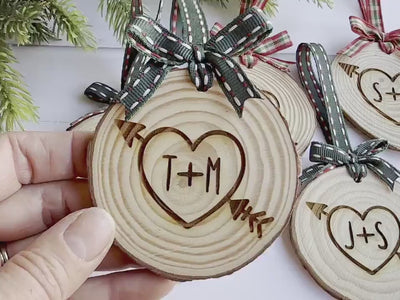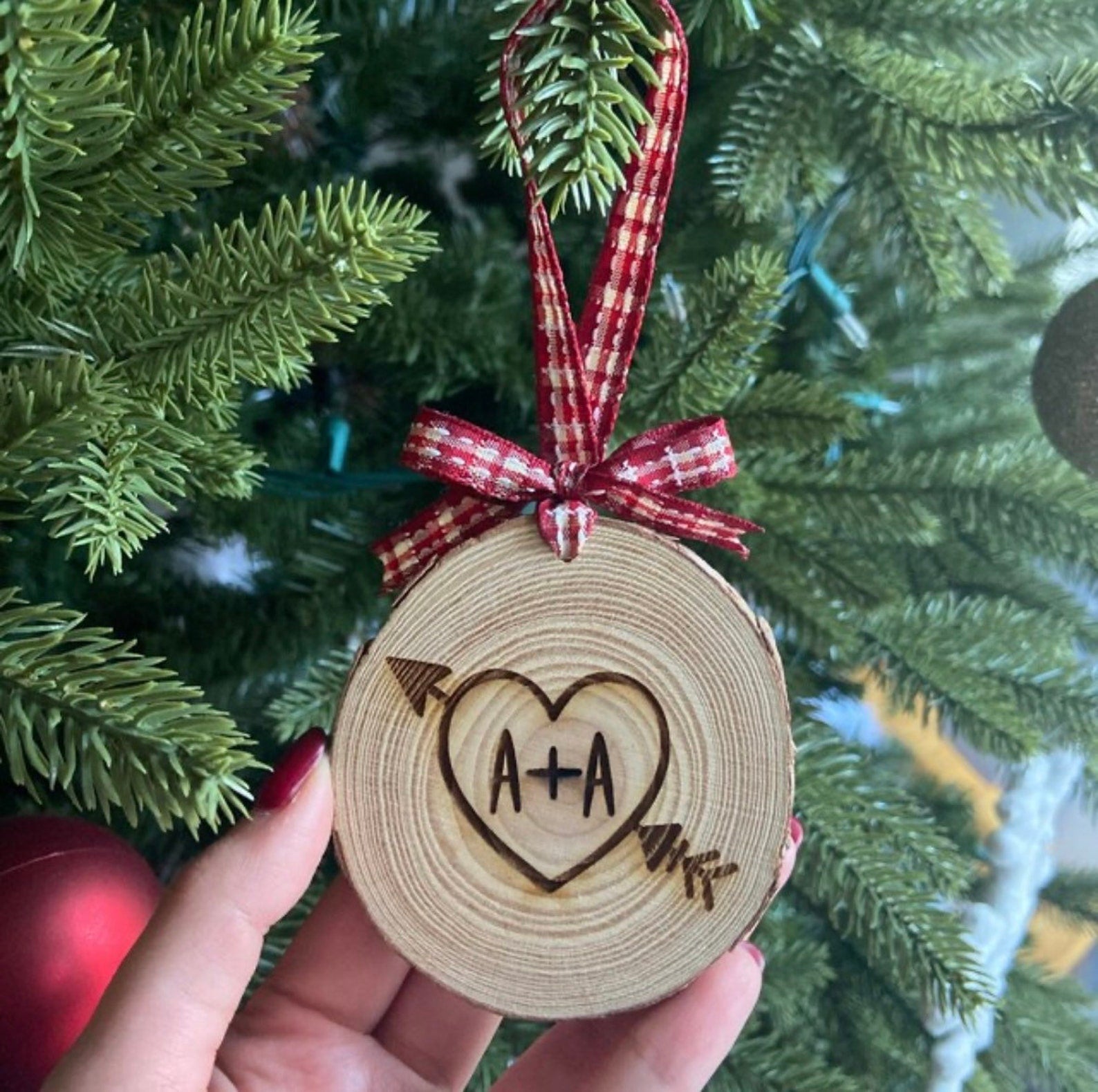 Custom Wood Christmas Ornament, Wood Slice Ornament, Couples Initials, Gift For Couples