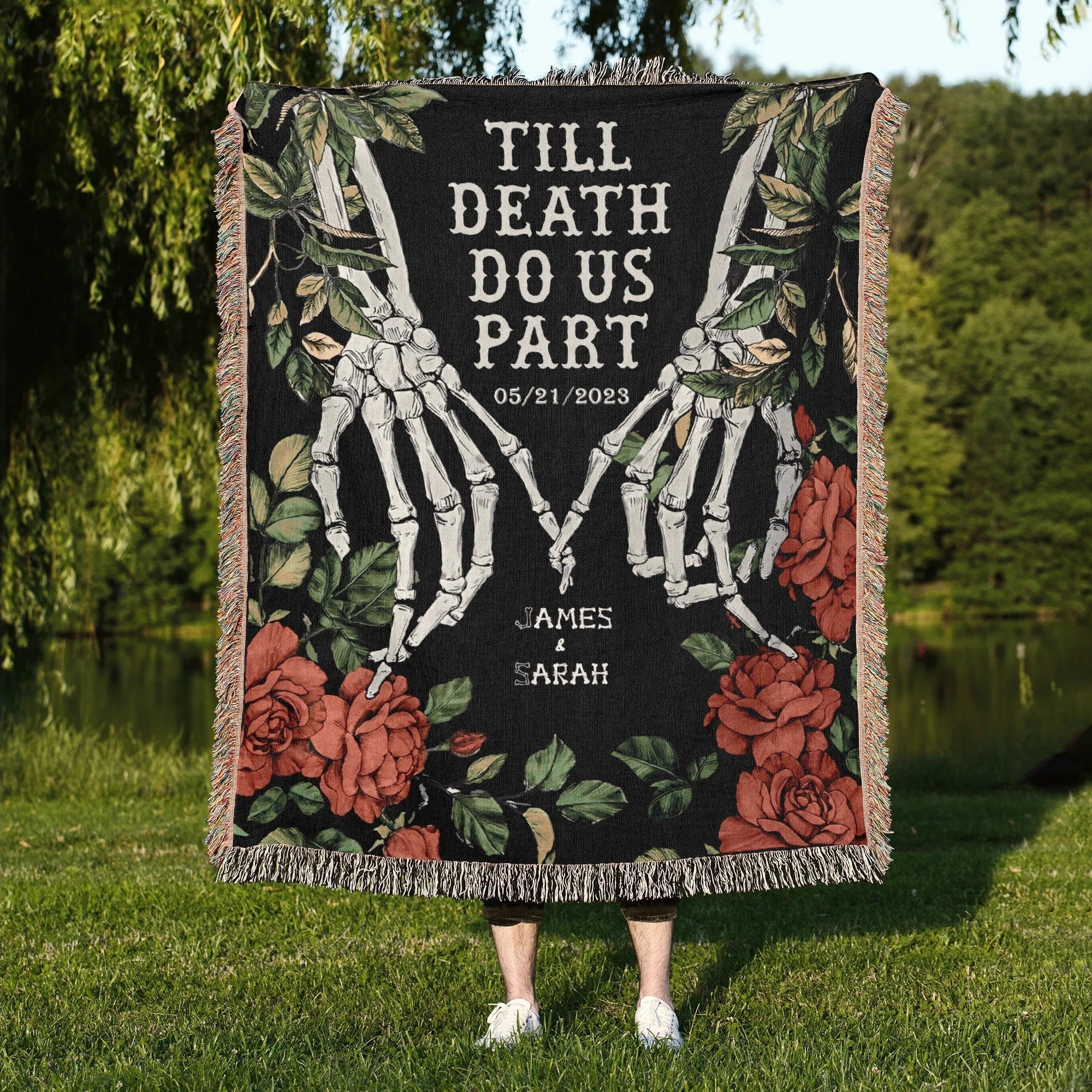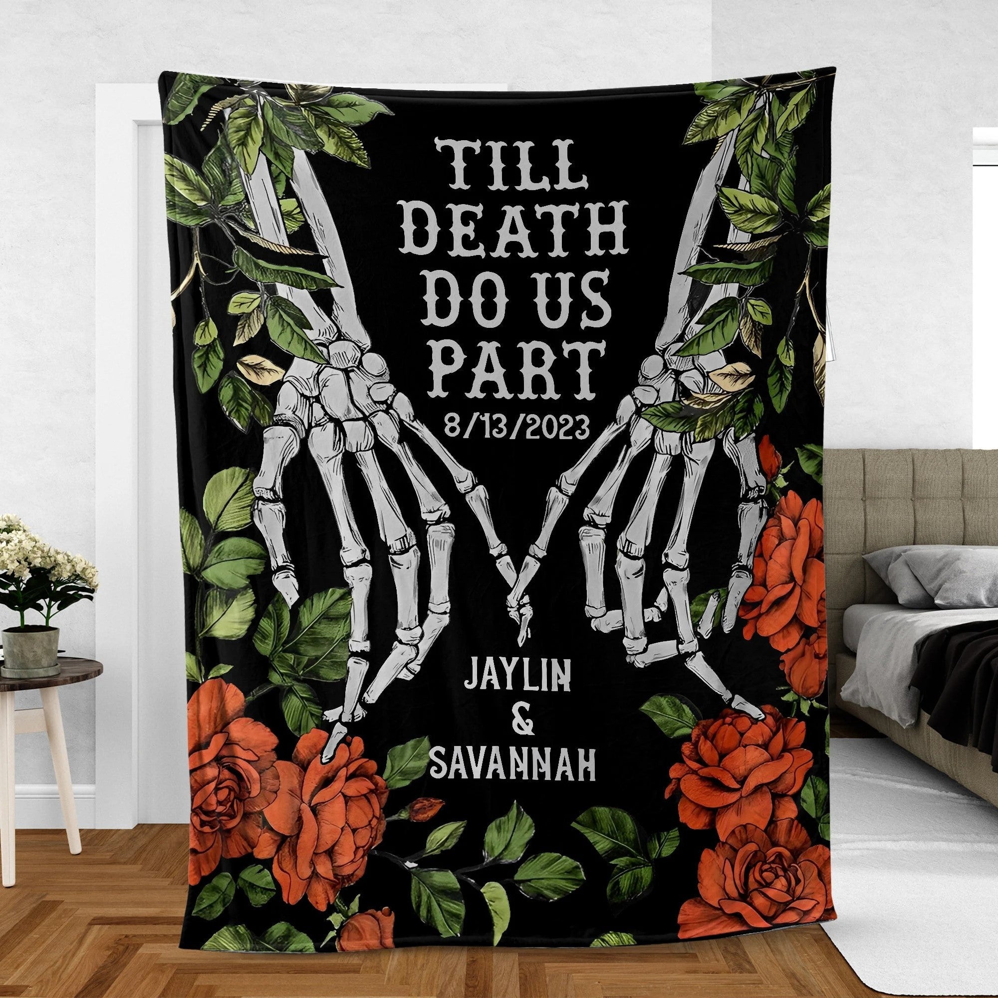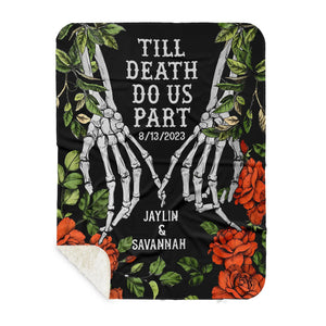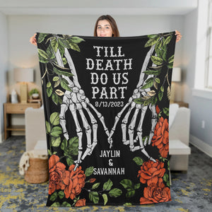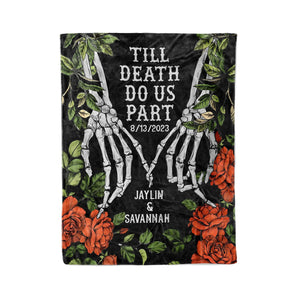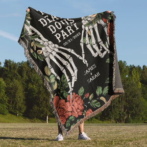 Custom Woven Throw Blanket, Halloween Couple Skeletons King Size Blanket, Halloween Decor