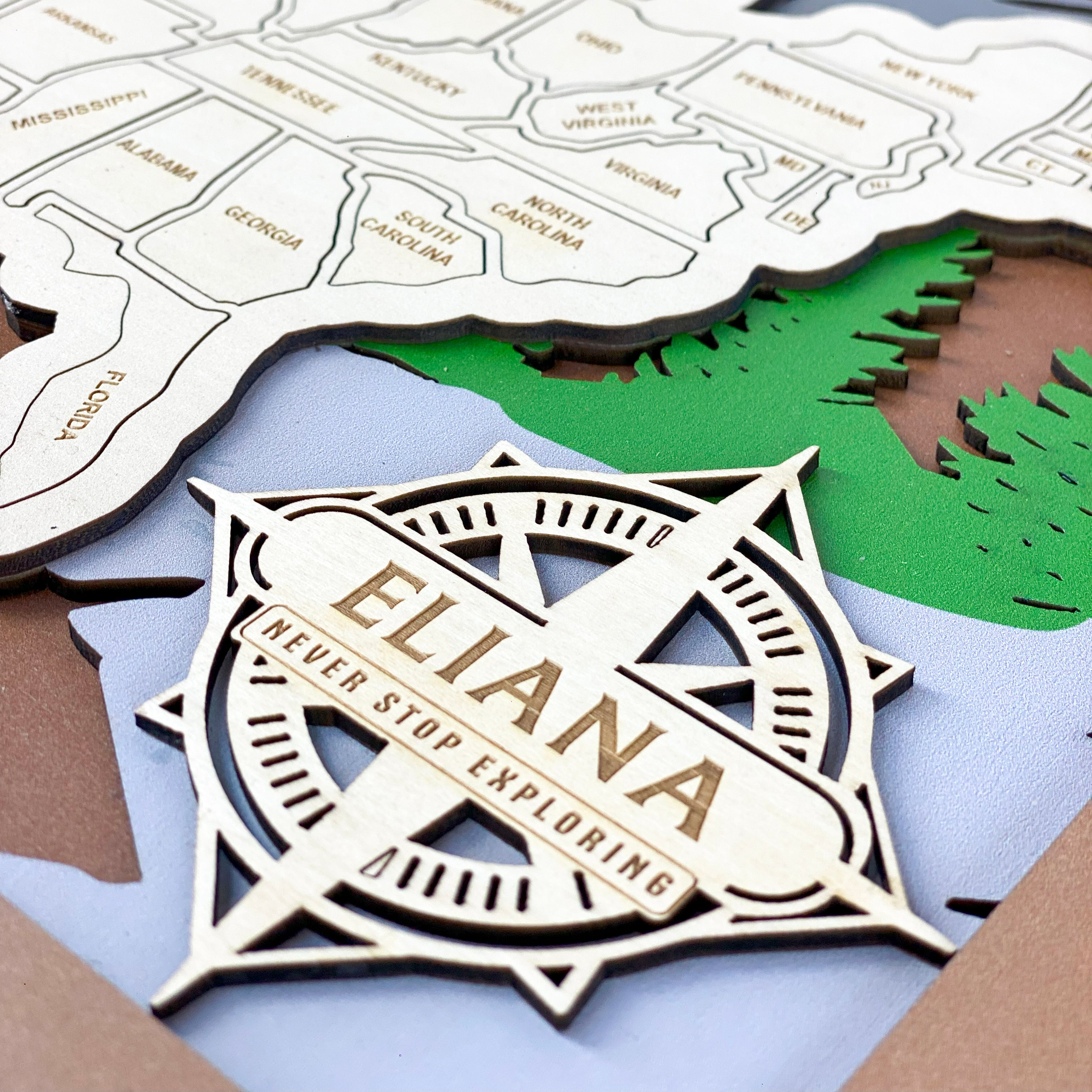 With our custom engraved badge, your wood map becomes a one-of-a-kind storyteller - marking your family name and the beginning of countless outdoor journeys through America's most beautiful parks.