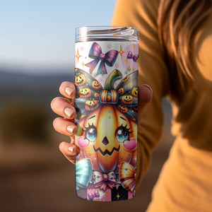Cute Pumpkin Girl 20oz 30oz Tumbler, Funny Coquette & Bows Halloween Tumbler, Halloween Gift Idea