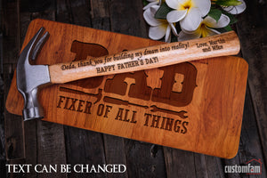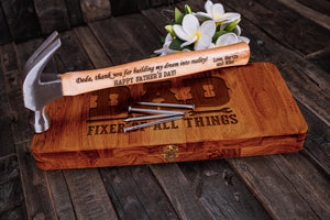 Dad Fixer Of All Things Personalized Engraved Hammer Box And Nails Set, Framing Hammer, Gifts For Dad