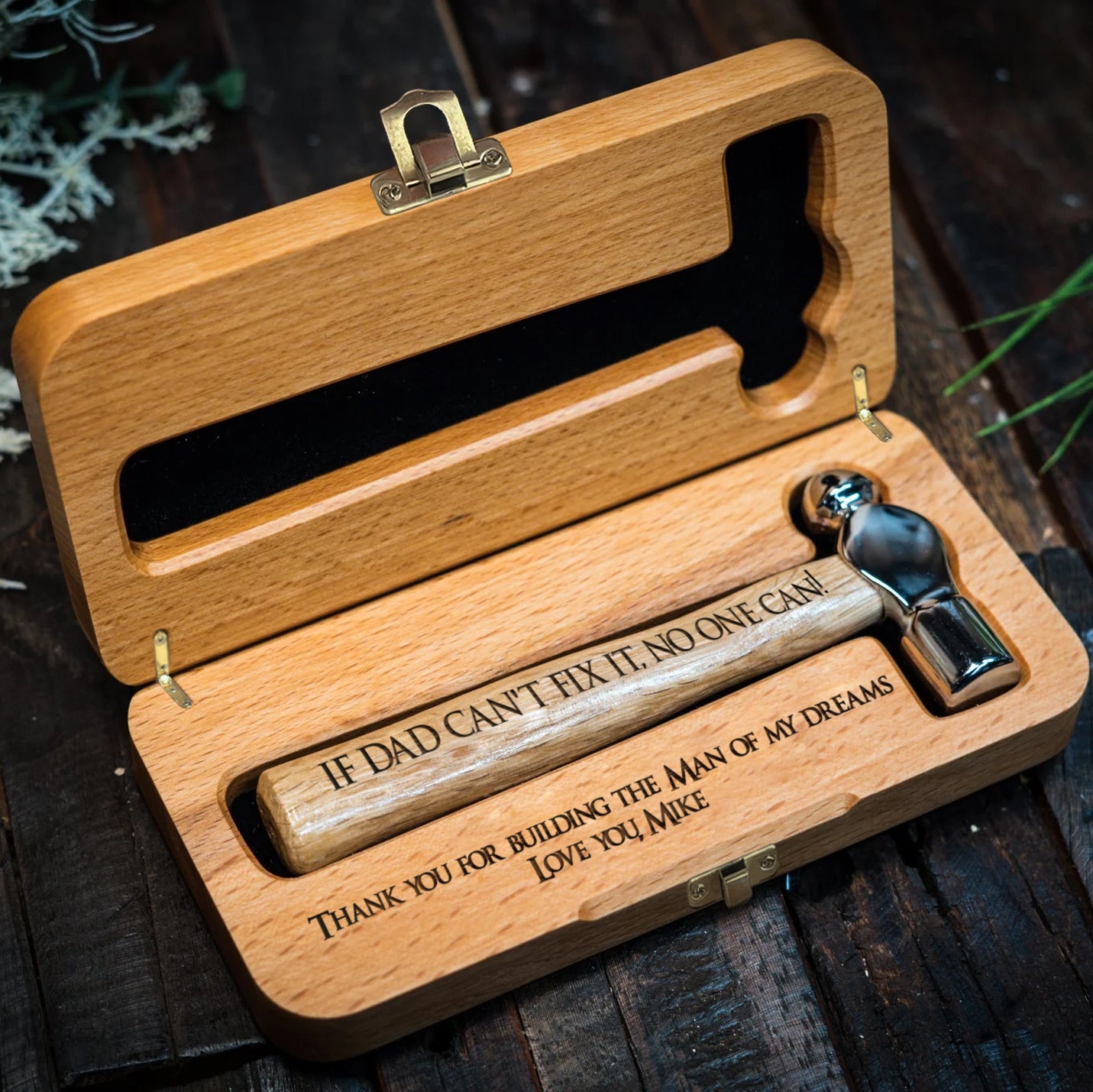Dad Fixer Of All Things Personalized Mini Hammer in Wooden Gift Box, Engraved Hammer, Framing Hammer, Gifts For Kids