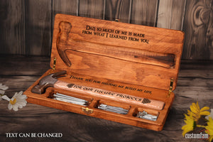 Dad, So Much Of Me Is Made From What I Learned From You Personalized Engraved Wooden Hammer Box And Nails Set, Framing Hammer