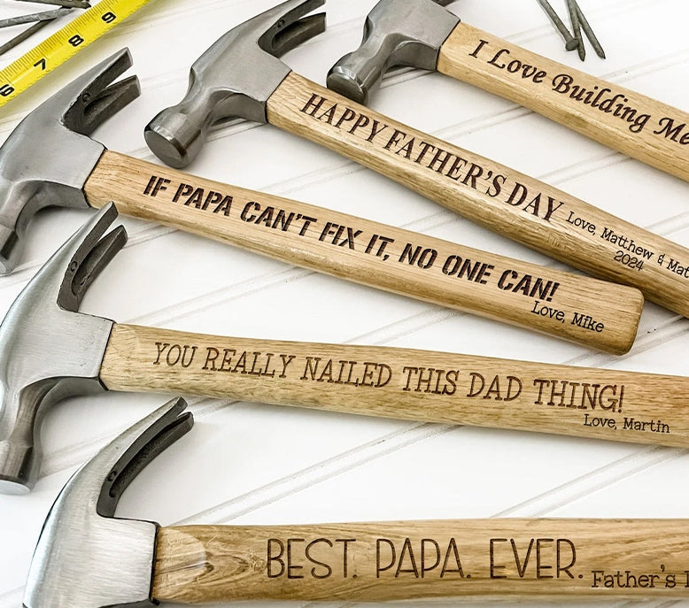 We Personalize each hammer personally with precision and care, and make sure you get your gifts in time. Choose from our many custom personalization options to create a one of a kind, unforgettable gift.