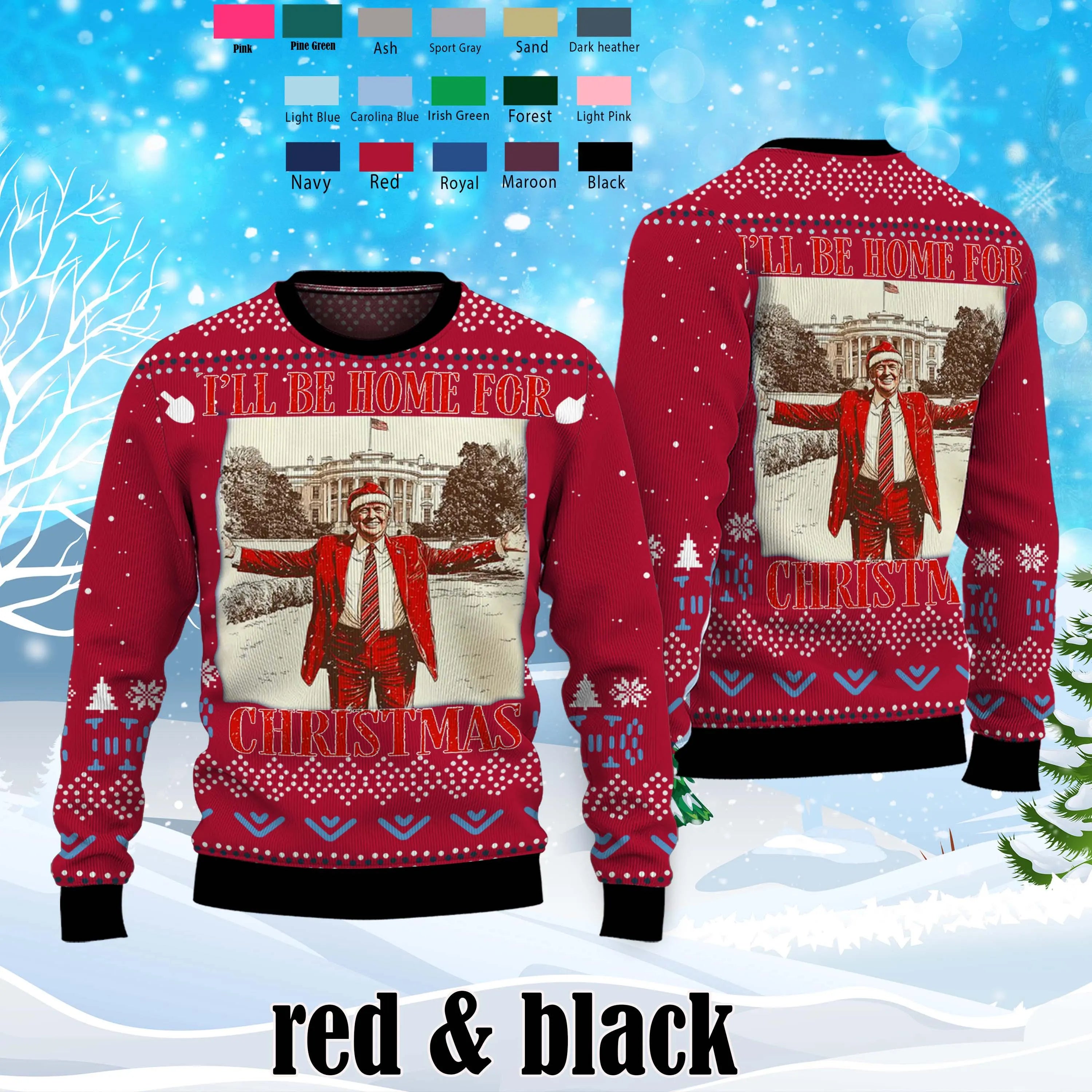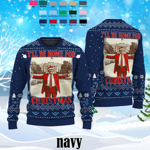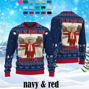 I'll Be Home for Christmas Ugly Sweater, Trump2024 Xmas Sweater, Vintage Christmas
