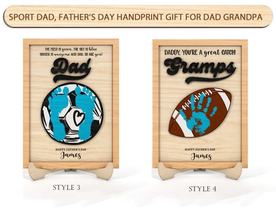 Daddy You Are A Great Catch Personalized Sport Father‘s Day Handprint Sign, Gifts for Dad, Father's Day Wooden Sign, Dad Gifts