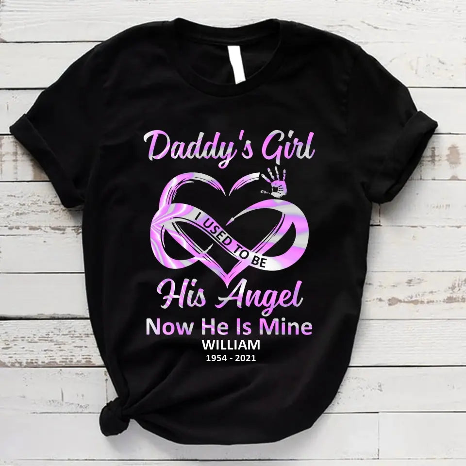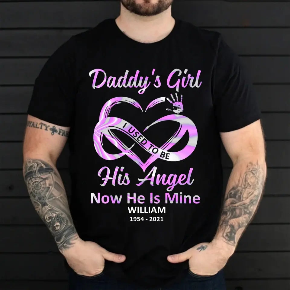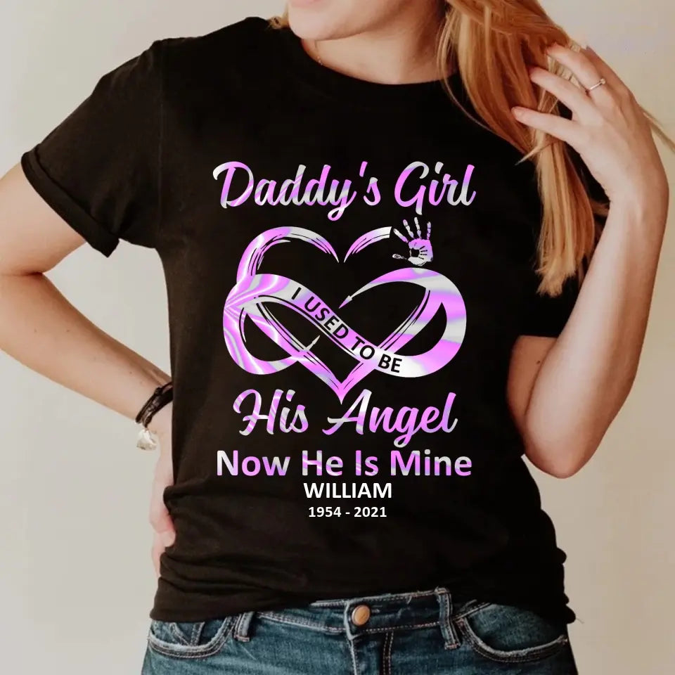 Daddy's Girl I Used To Be His Angel Now He Is Mine T-Shirt, Custom Name Shirt For Dad, Gift For Dad, Father's Day Gifts