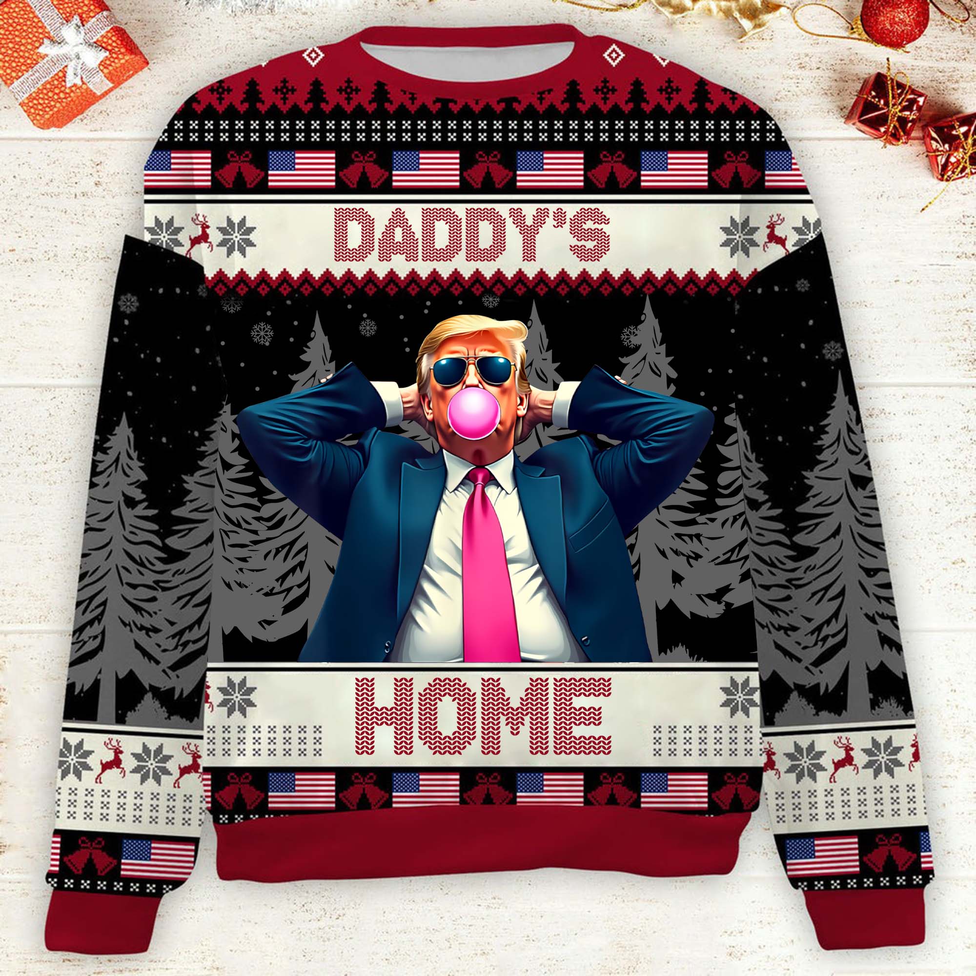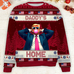 Daddy's Home Funny Humorous Trump2024 Christmas Ugly Sweater, Funny Political Shirts