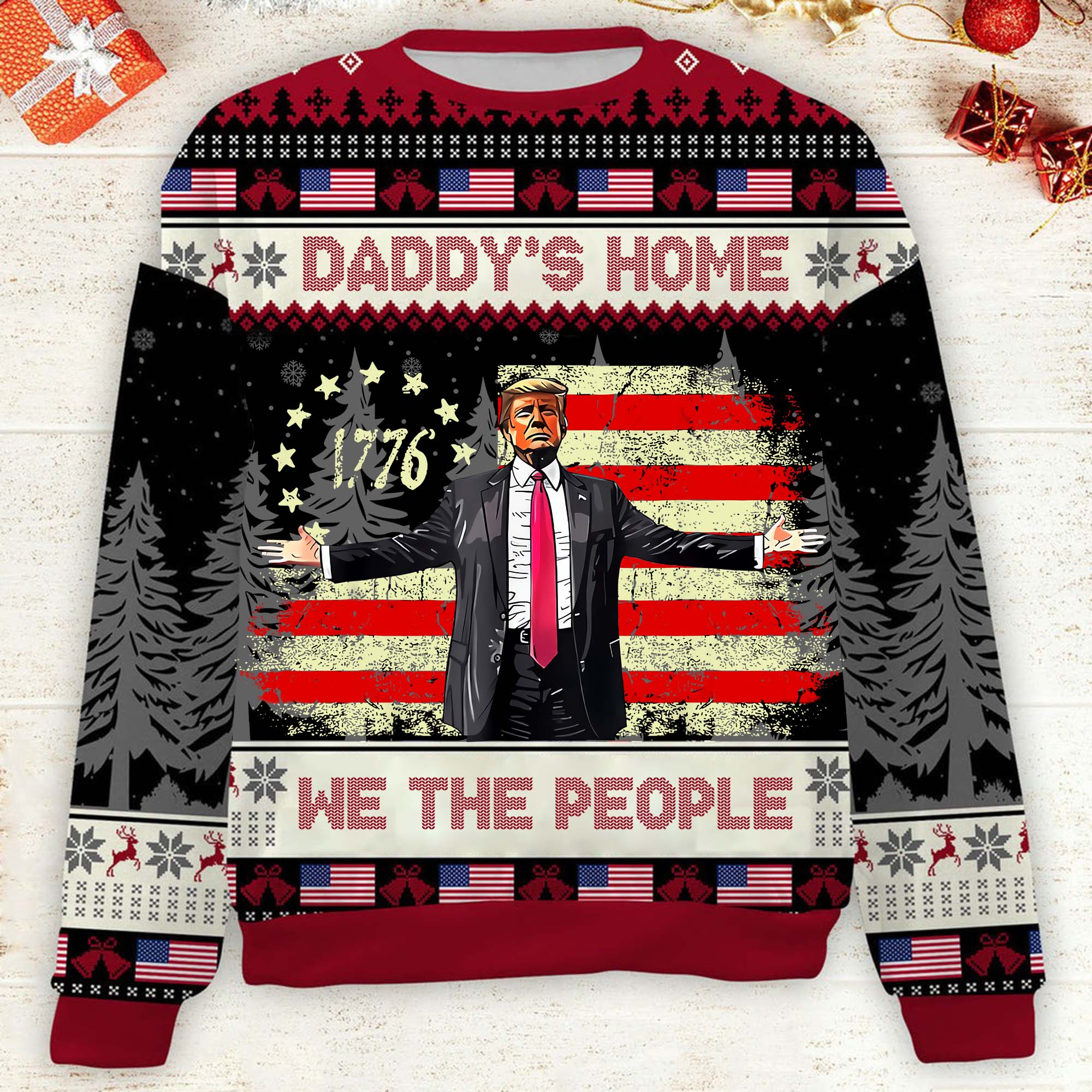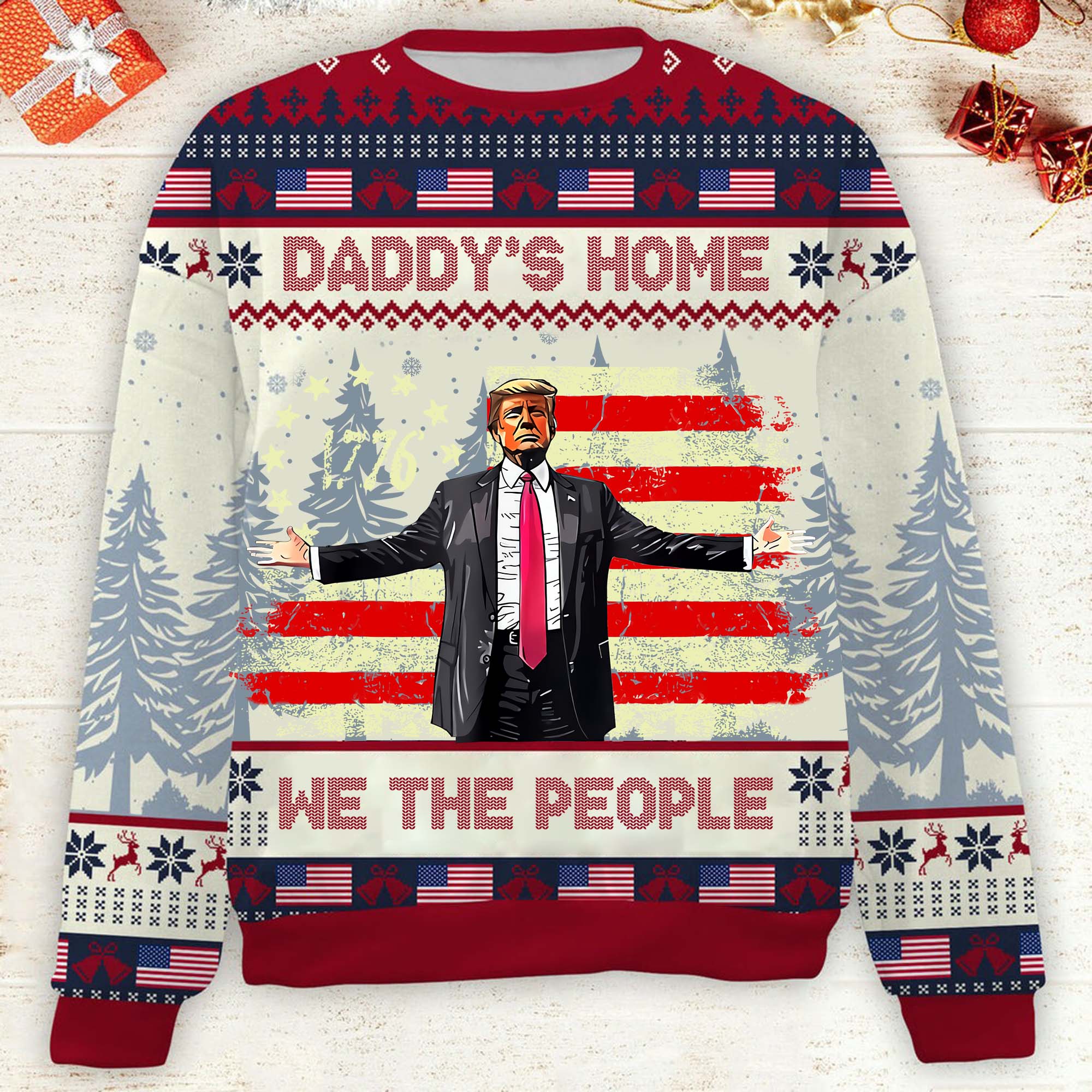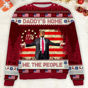 Daddy's Home Funny Humorous Trump2024 Funny Christmas Ugly Sweater, Funny Political Shirts