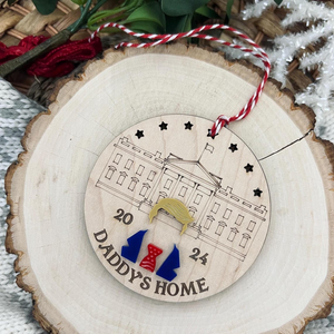 Celebrate the holiday season with a touch of patriotism and humour! This unique, hand-crafted wooden ornament features a playful "Daddy's Home" design with a bold "Trump2024" message, making it the perfect addition to your Christmas tree or holiday decor. Made from high-quality wood and carefully painted, this ornament blends traditional charm with a modern political twist. Ideal for collectors, Trump supporters, or anyone looking to add a fun and festive touch to their holiday decorations.