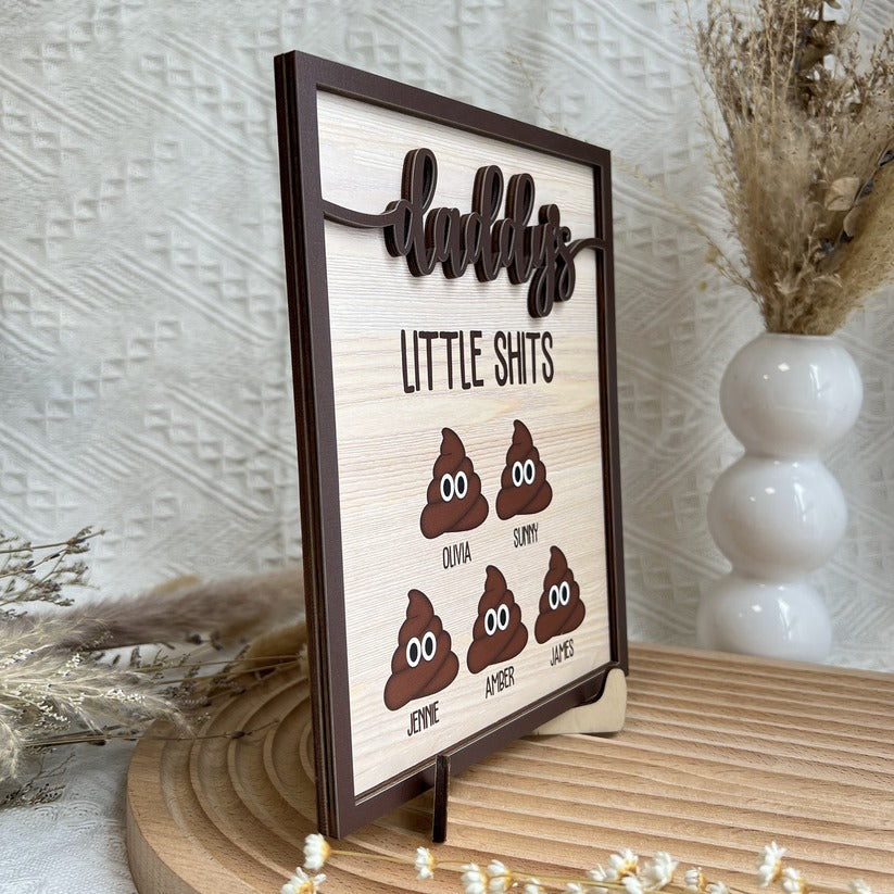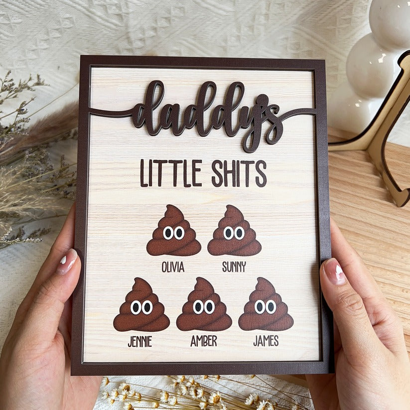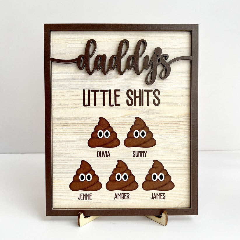 Daddy's Little Shits Personalized Wooden Plaque, Father's Day Gifts, Custom Wooden Sign, Birthday Gift for Papa, Daddy, Grandpa