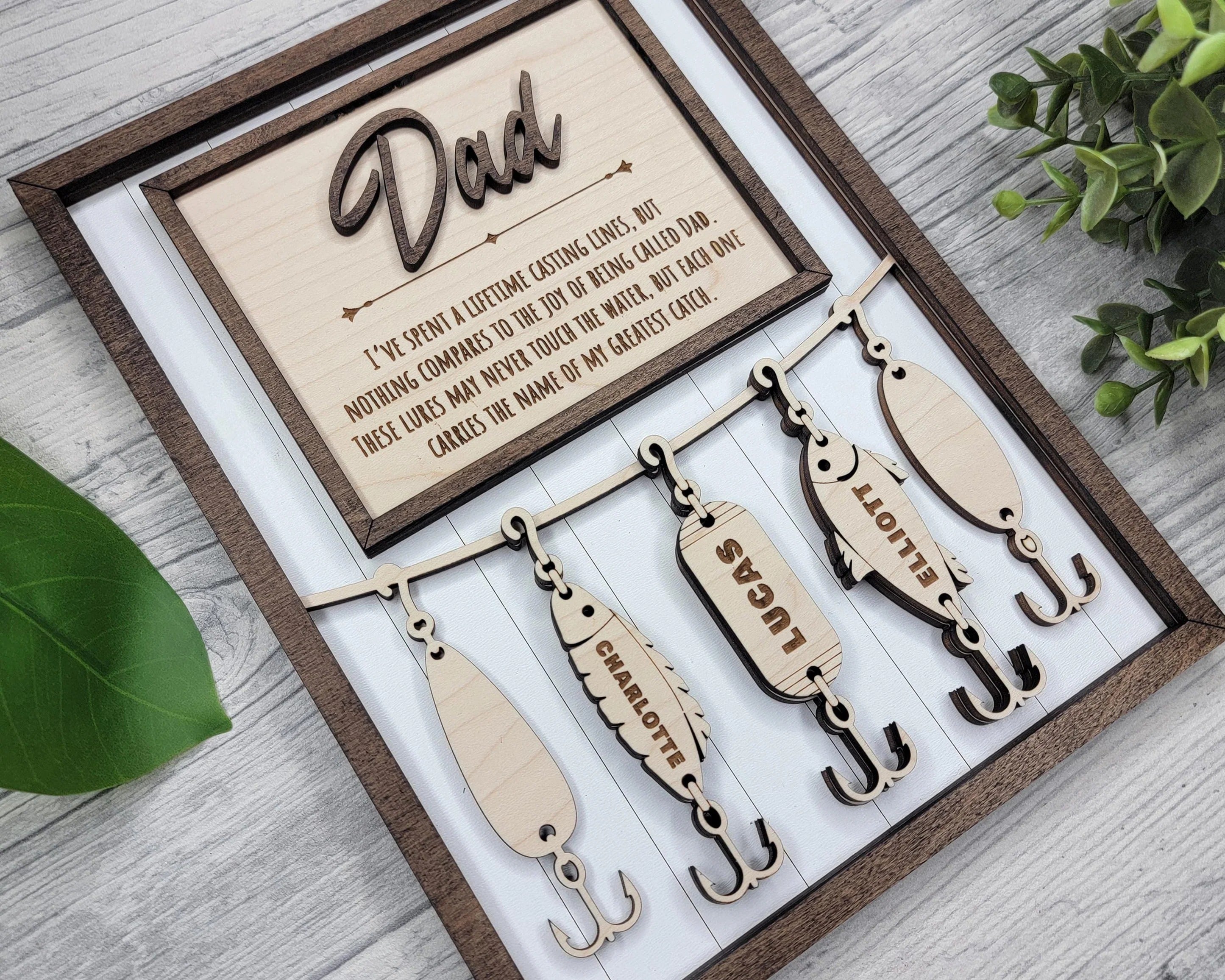 Dad's Fishing Lure Custom Wooden Sign, Fishing Father's Day gifts
