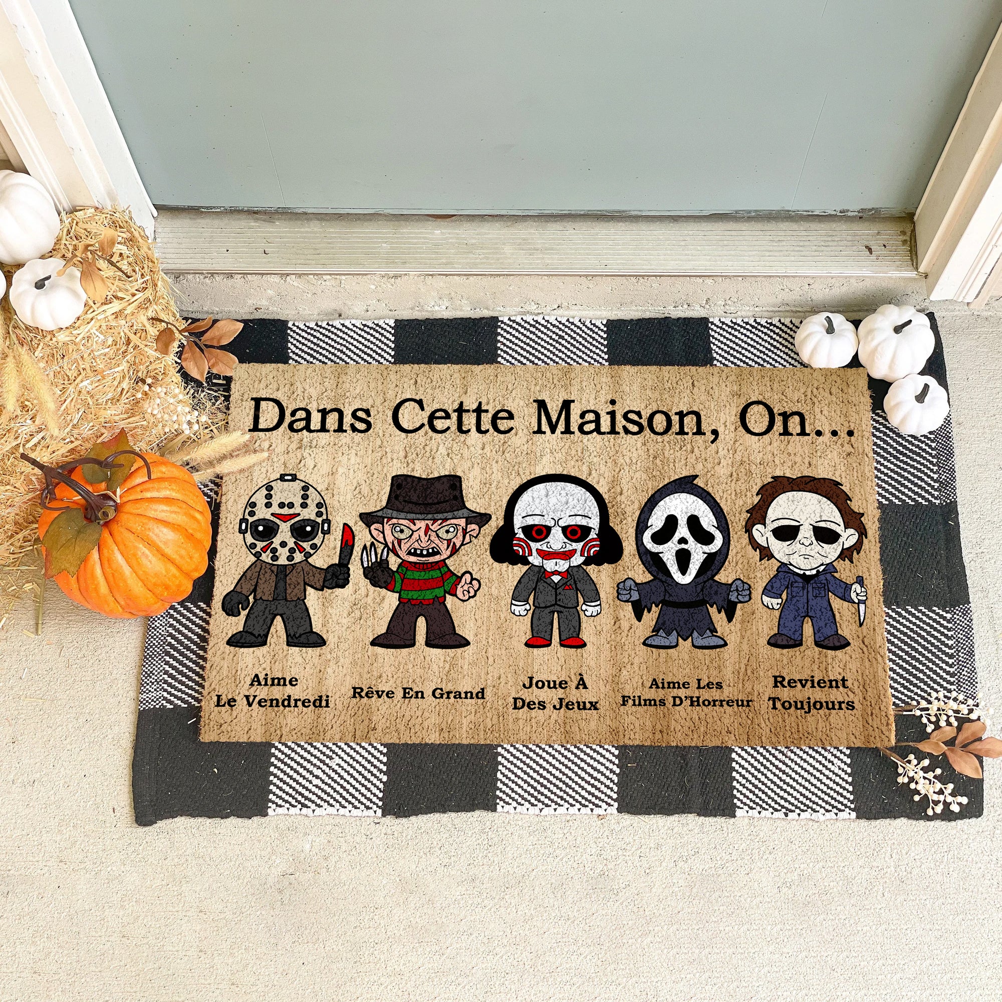 Dans Cette Maison, Nous Avons Des Personnages d'horreur, Un Paillasson, Un Cadeau Pour Les Fans De Films d'horreur, Une Décoration d'Halloween