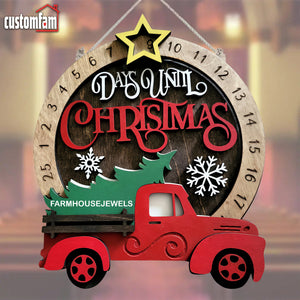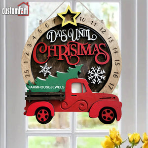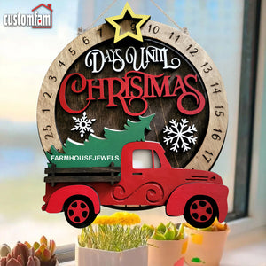 Days Until Christmas Red Truck With Christmas Tree Countdown Sign, Christmas Decor