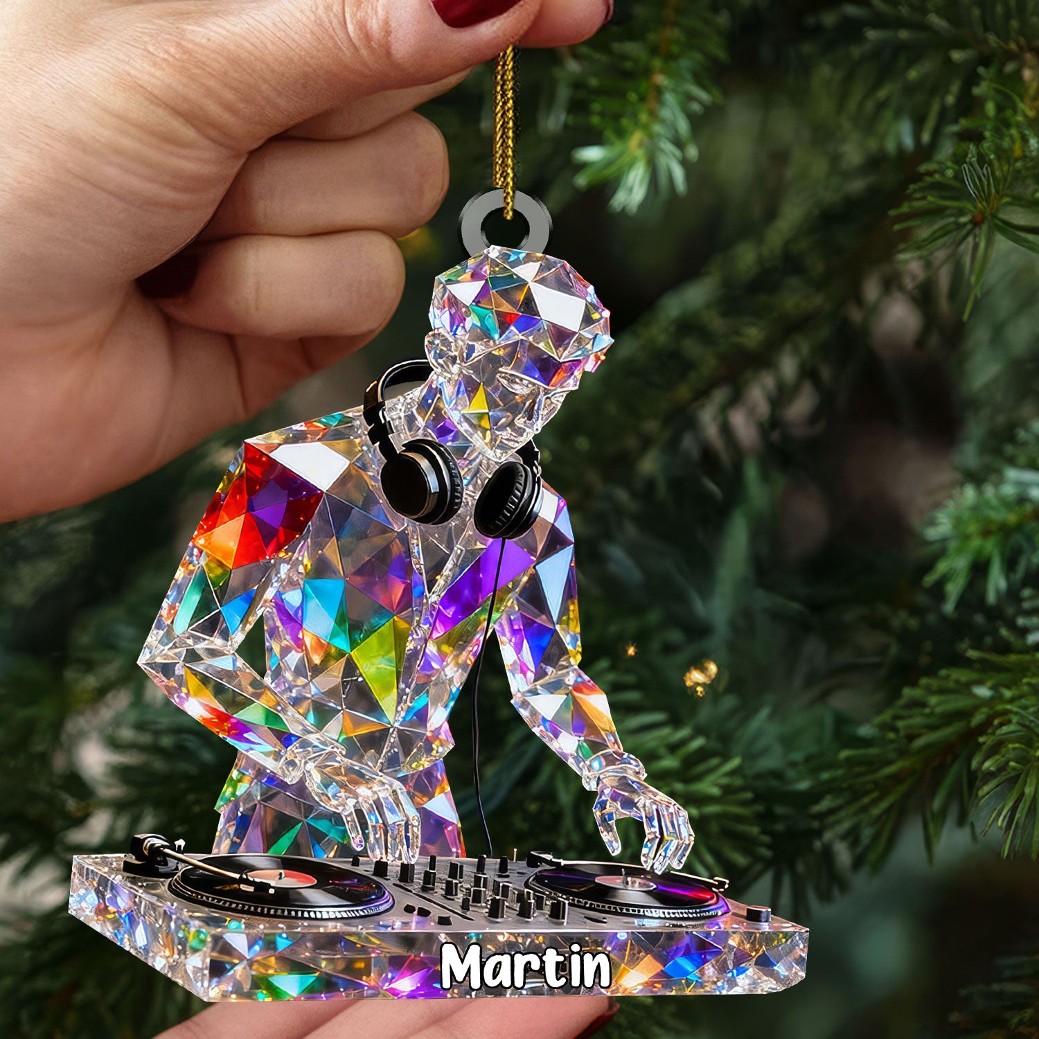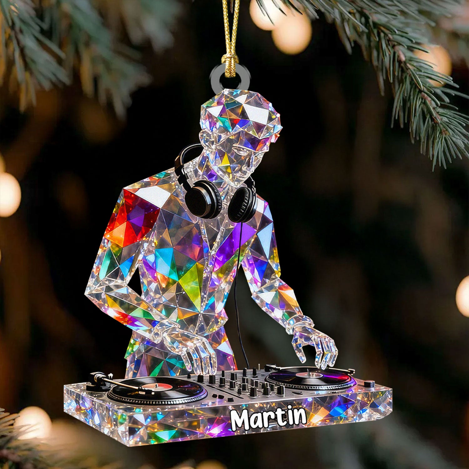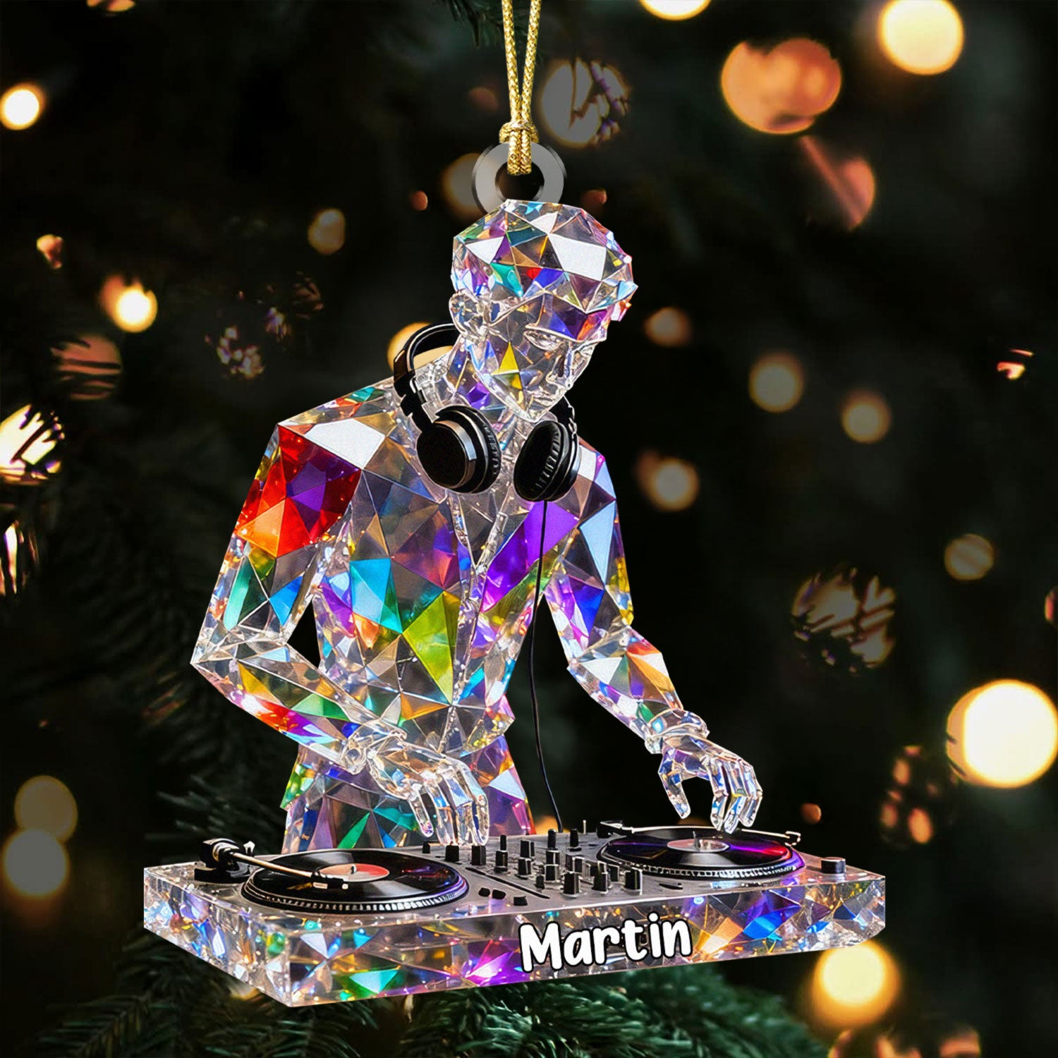 Deck Master Custom Name Stained Glass Effect Acrylic Christmas Ornament, Gift For DJ, Music Ornament