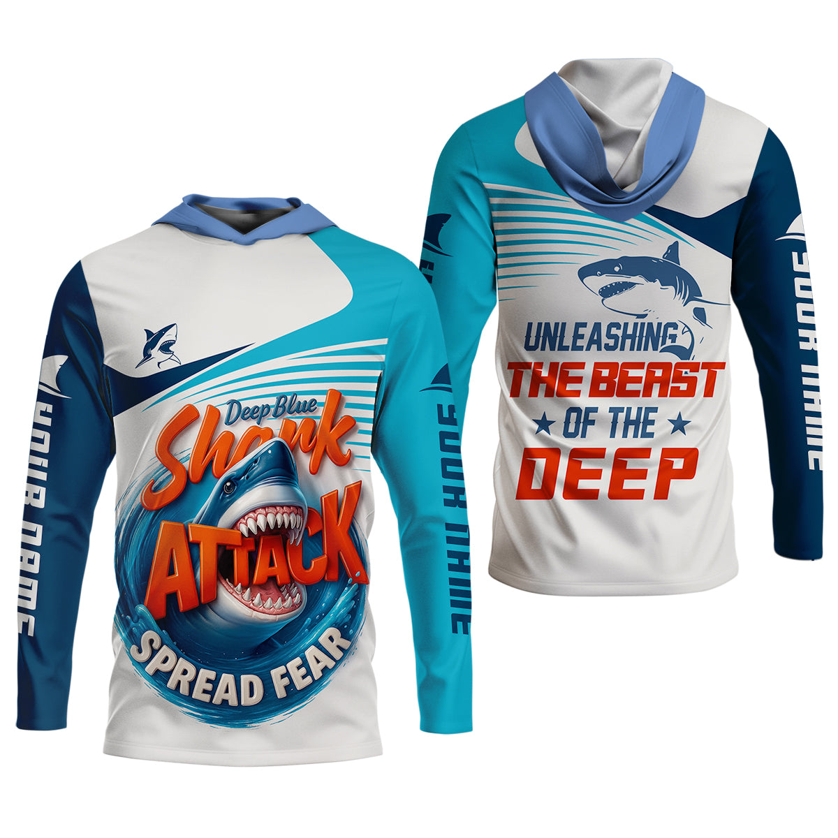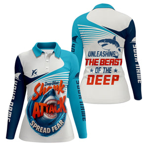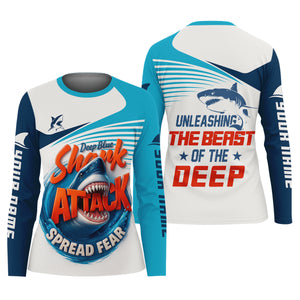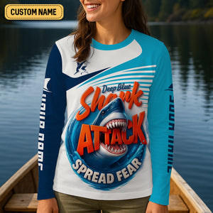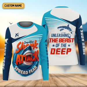 Deep Blue Shark Attack, Unleashing The Beast Of The Deep Fishing UPF Shirts, Women Fishing Shirt