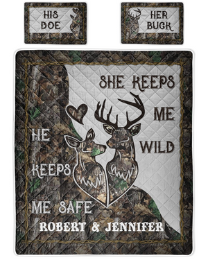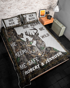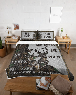 Deer Couple His Doe Her Buck Quilt Bed Sets, Couple Bedding Set, Couple Valentine Gift, Gift For Hunter