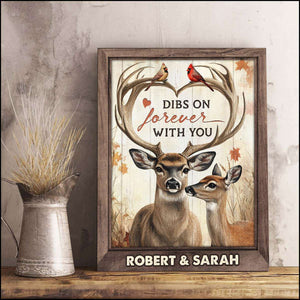 Dibs On Forever With You Custom Deer And Cardinal Canvas Wall Art, Anniversary Wedding Gift