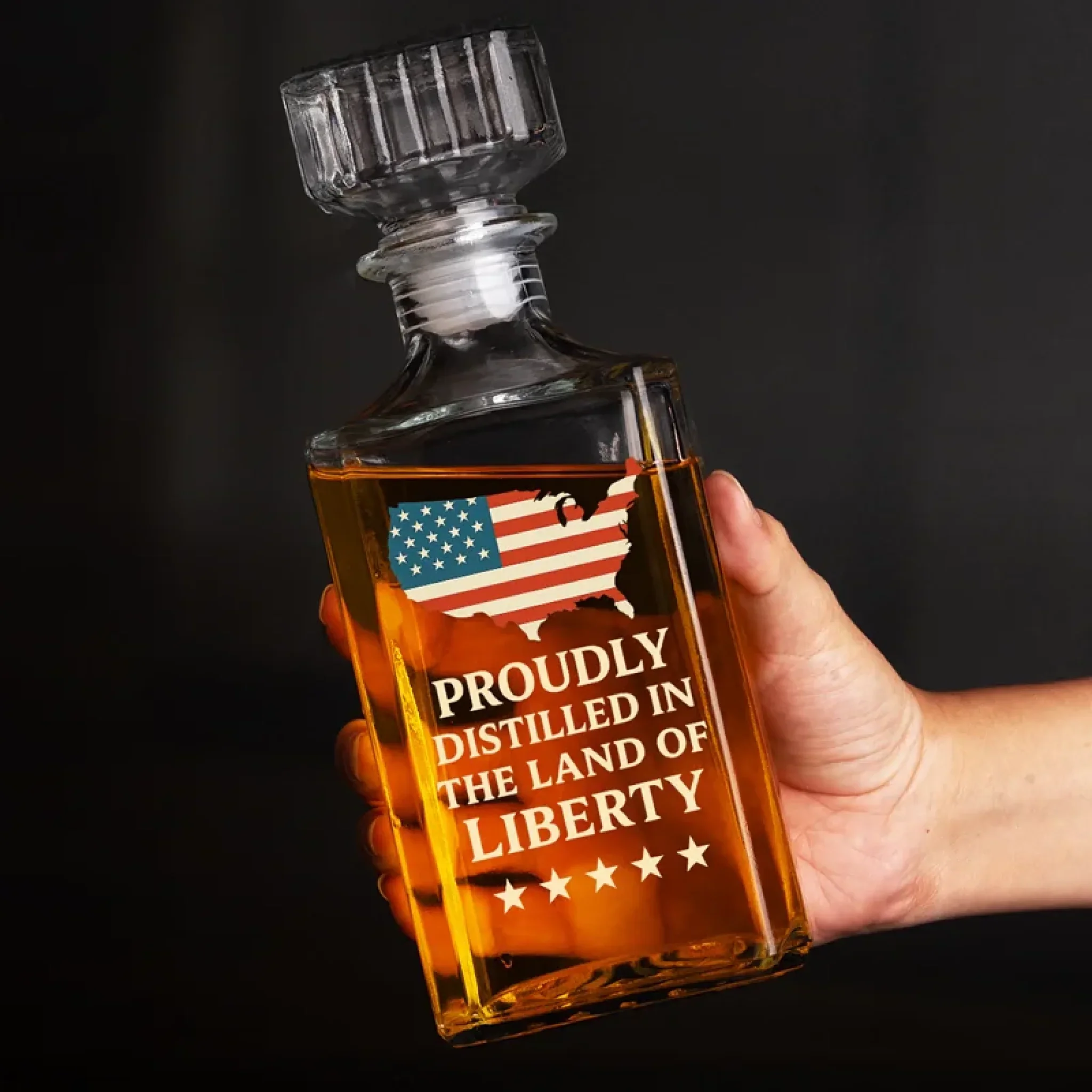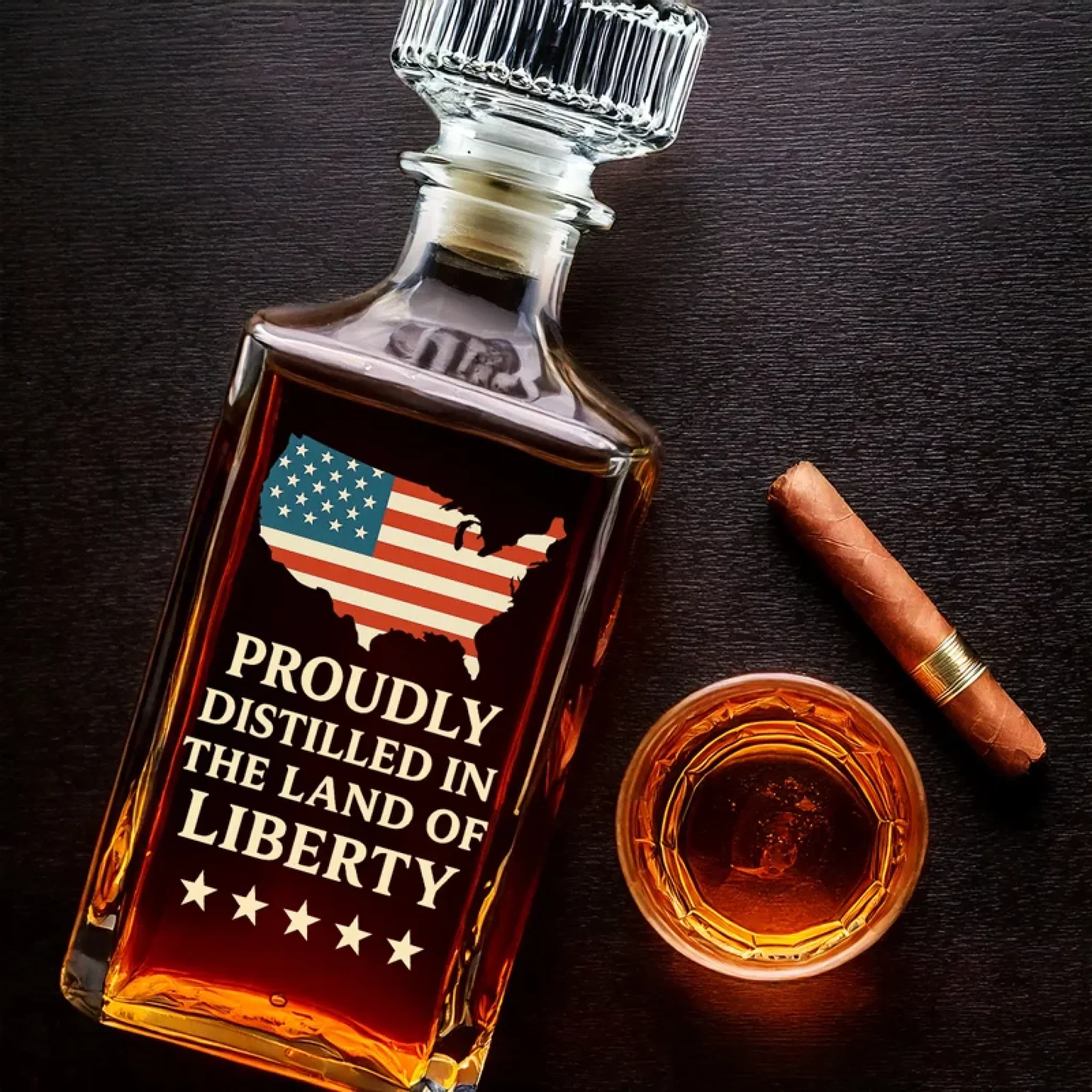 Distilled In The Land Of Liberty Whiskey Decanter Set American Glassware Wine Glasses Set