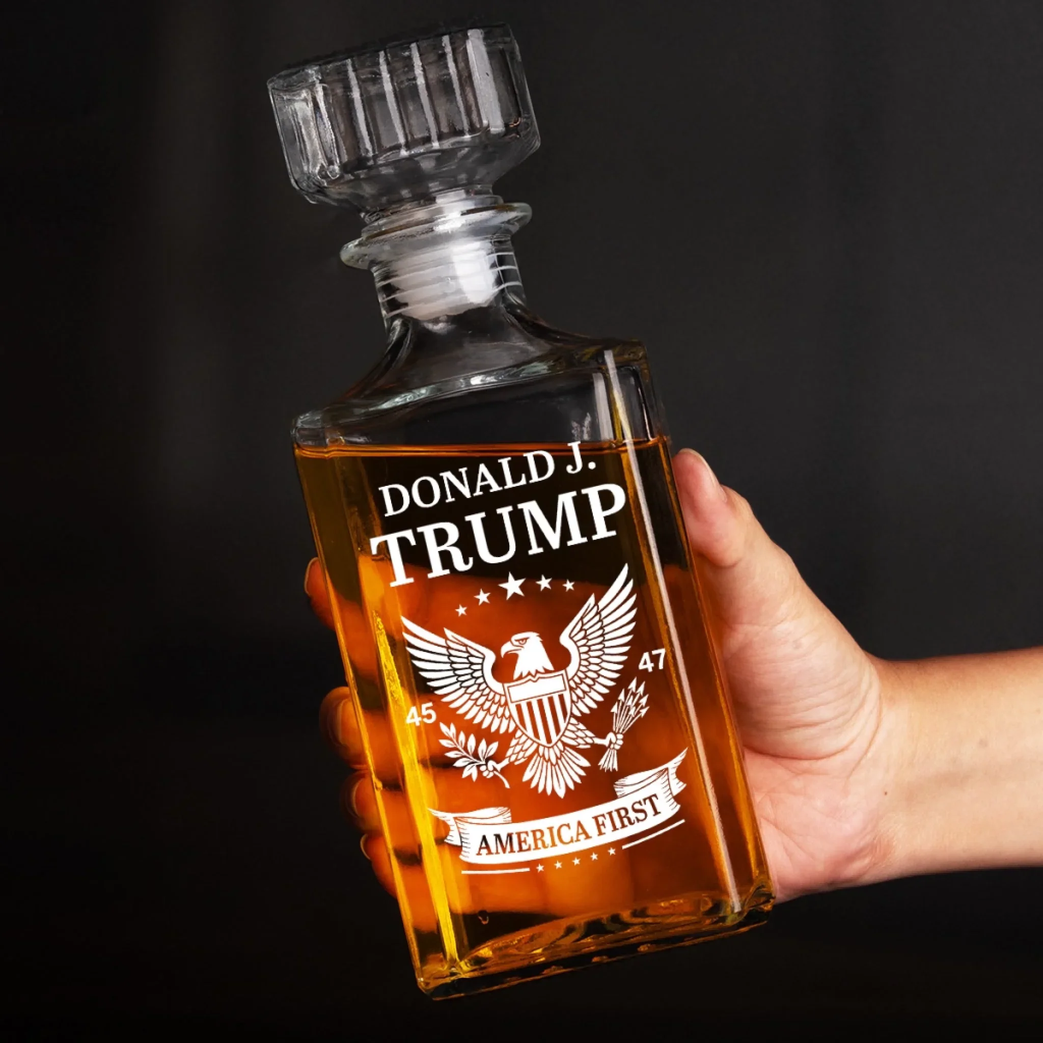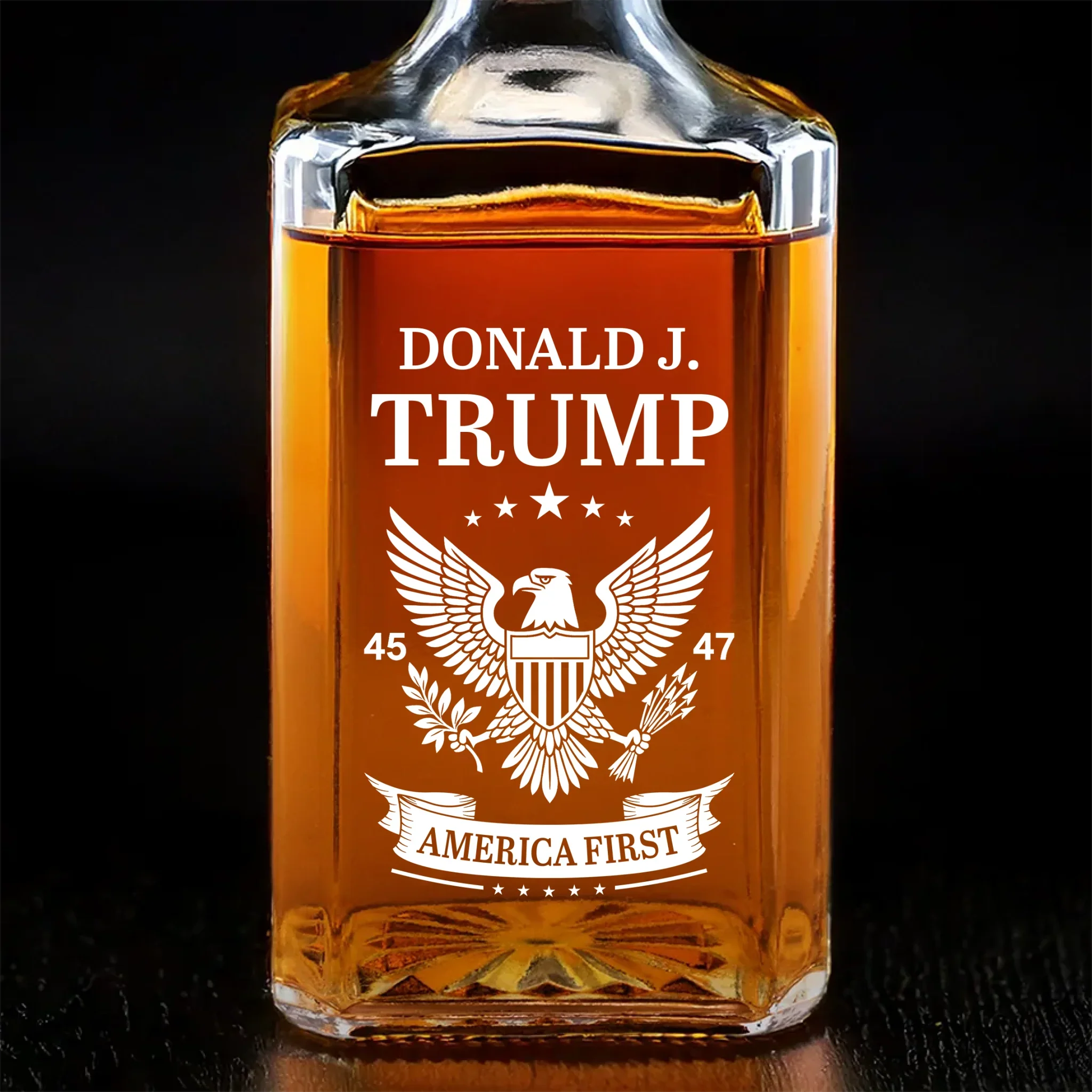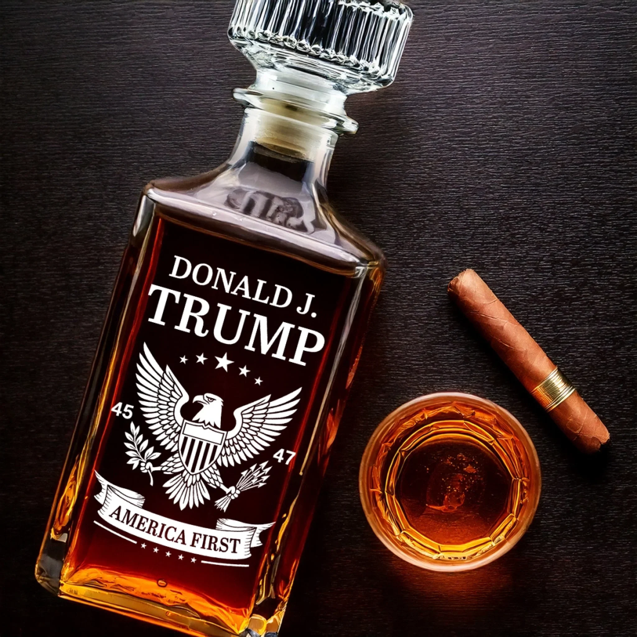 Donald Trump America First 45 & 47 Glass Whiskey Decanter Set American Glassware Wine Glasses Set