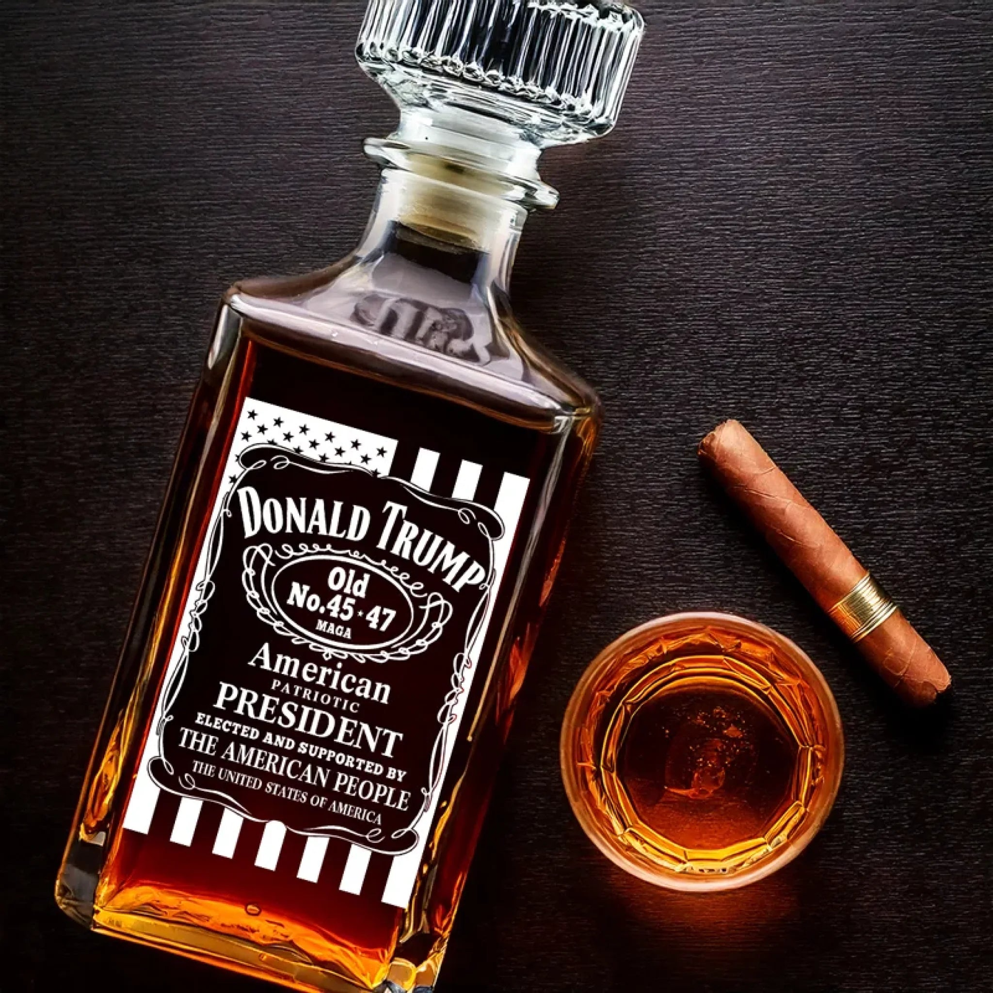 Donald Trump Whiskey Decanter MAGA Patriotic Whiskey Decanter Set American Glassware Wine Glasses Set