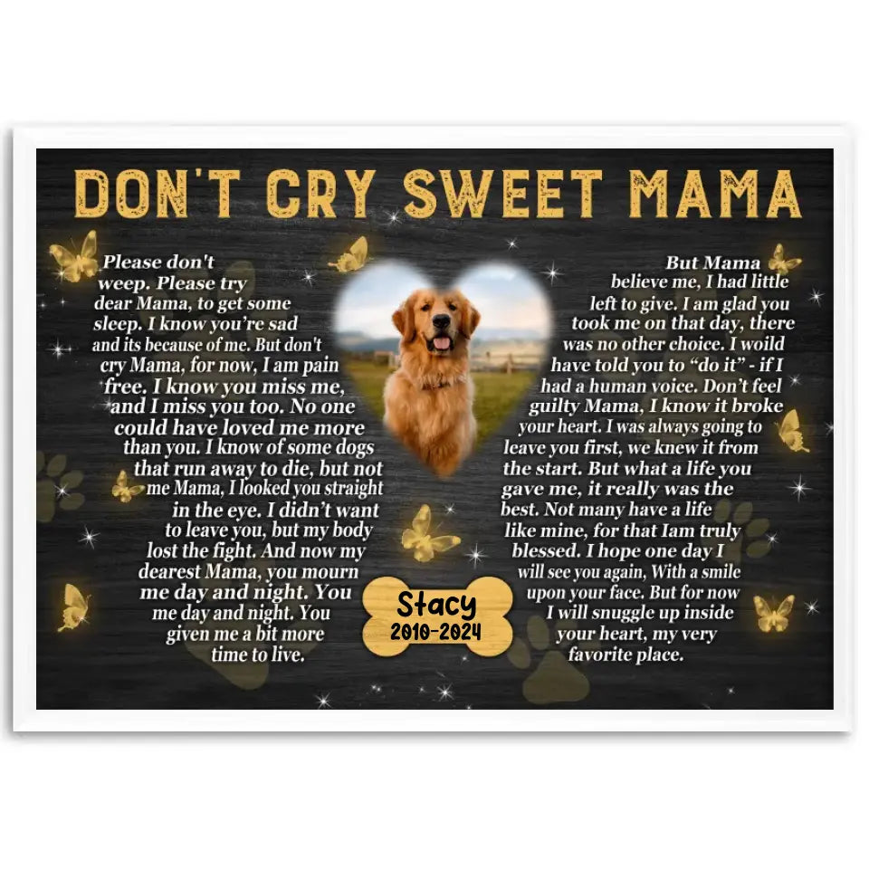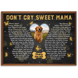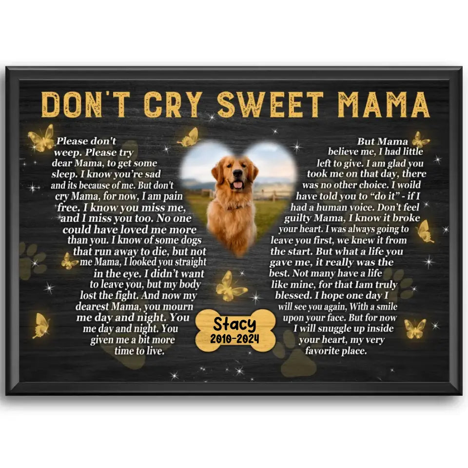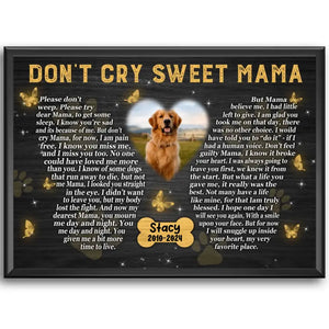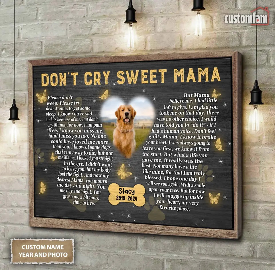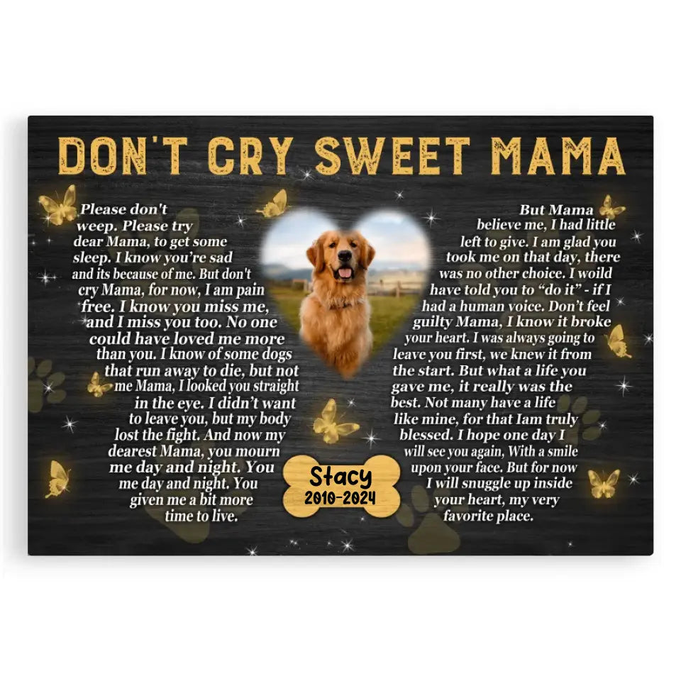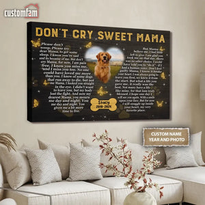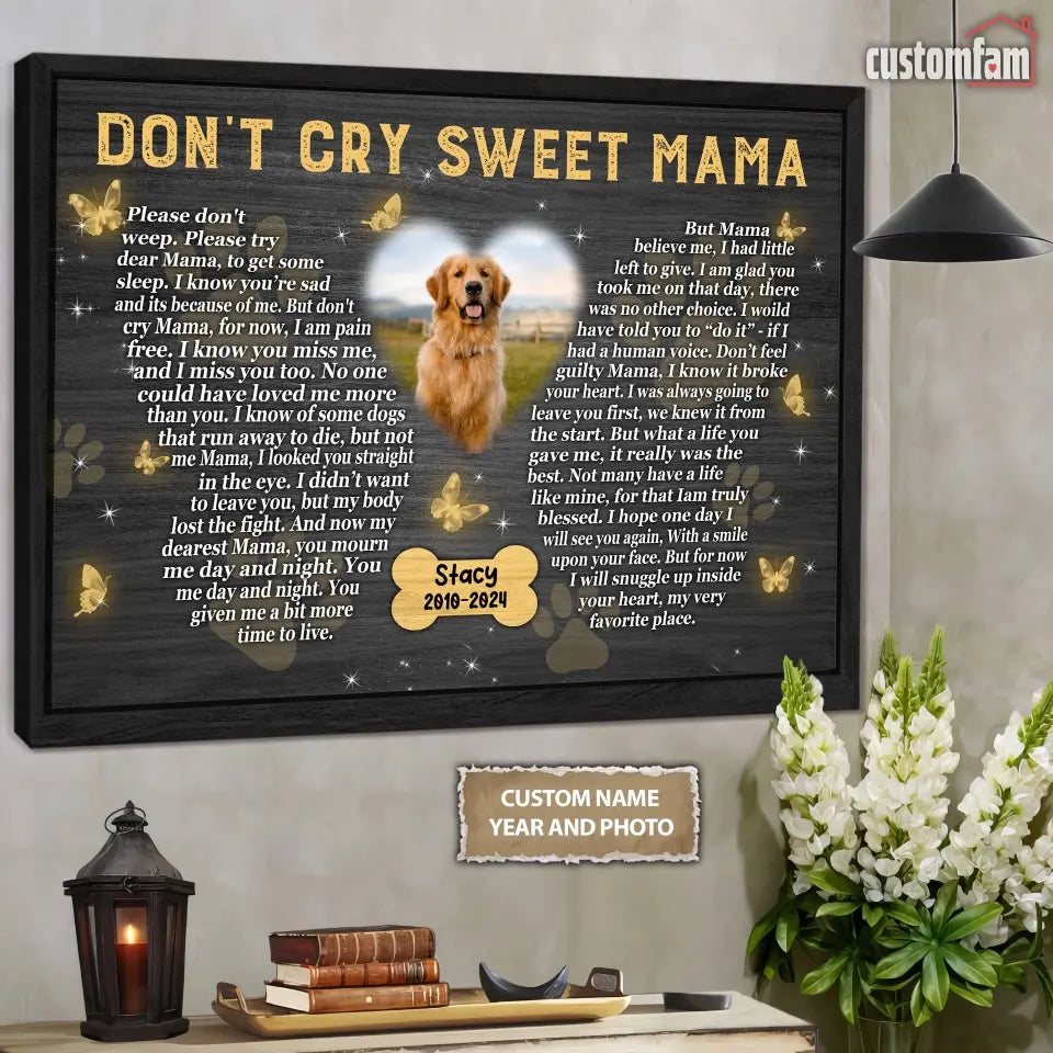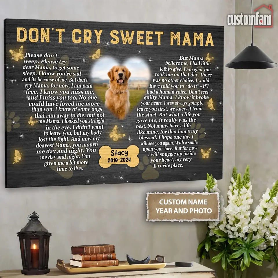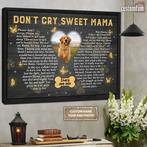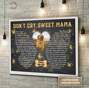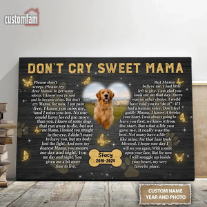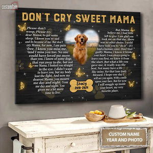 Don't Cry Sweet Mama Personalized Photo Canvas Wall Art, Memorial Pet Photo Gifts, Custom Portrait Dog Loss Gifts, Dog Gifts, Sympathy Gifts For Dog Lover