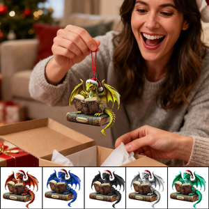Dragon Reading Book Acrylic Ornament, Dragon Christmas Ornament, Gift For Dragon Lovers