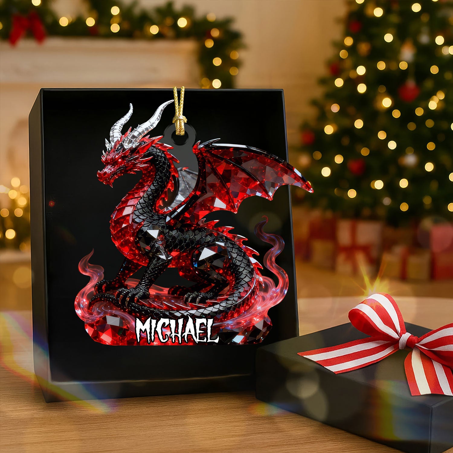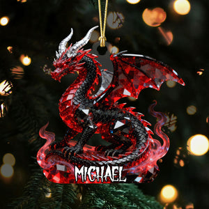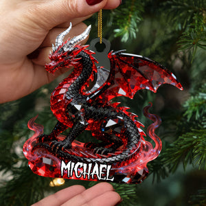 Dragon Red Stained Glass Crystal Effect Acrylic Ornament, Majestic Dragon Fantasy Lover Cool Christmas Gifts